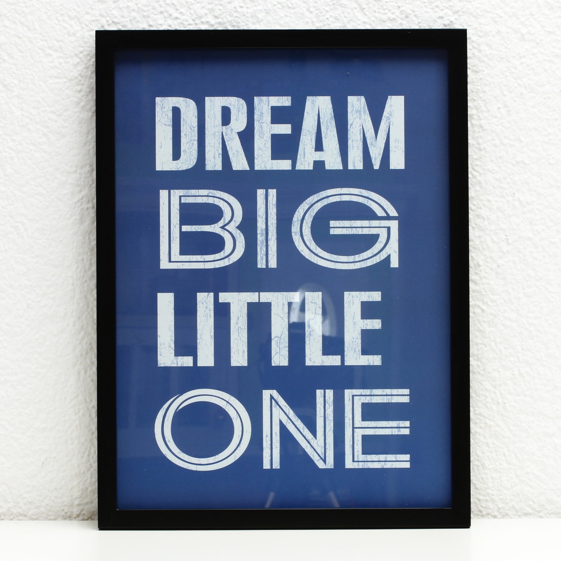 Bild mit dem Spruch "Dream Big little One" mit schwarzem Rahmen aus Holz.