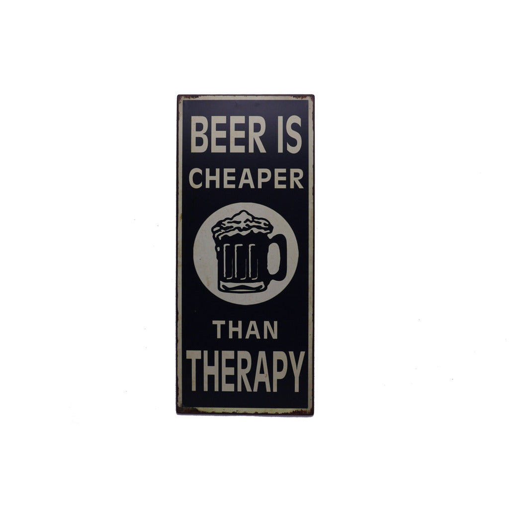 Schild mit dem Text "Beer is cheaper than therapy". Kann mit zwei Nägeln aufgehängt werden.