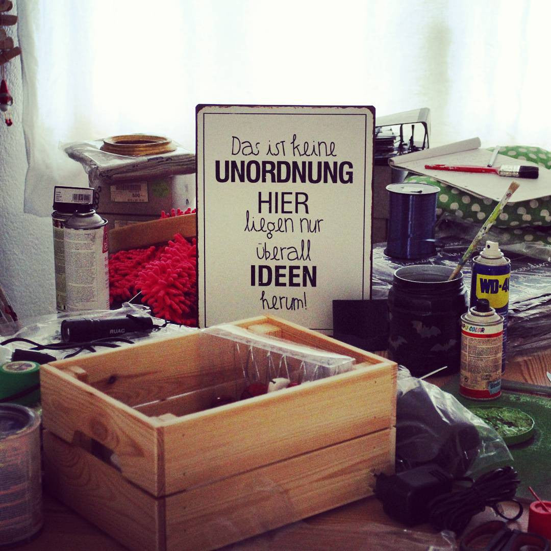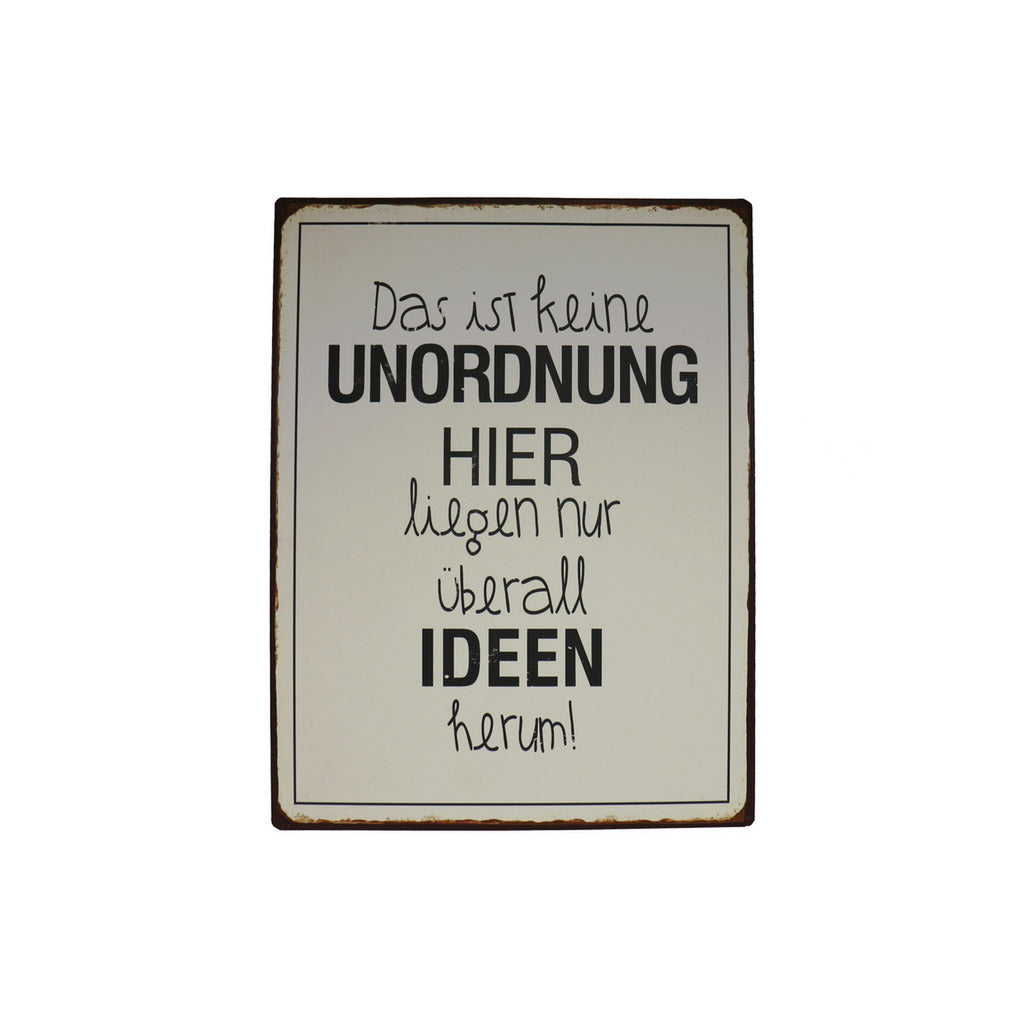 Blechschild: Das ist keine Unordnung - hier liegen nur überall Ideen herum!