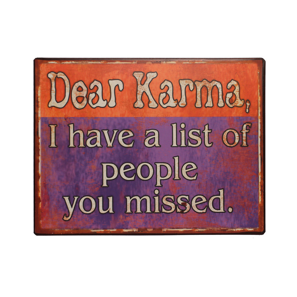 Blechschild: Dear Karma, I have a list of people you missed