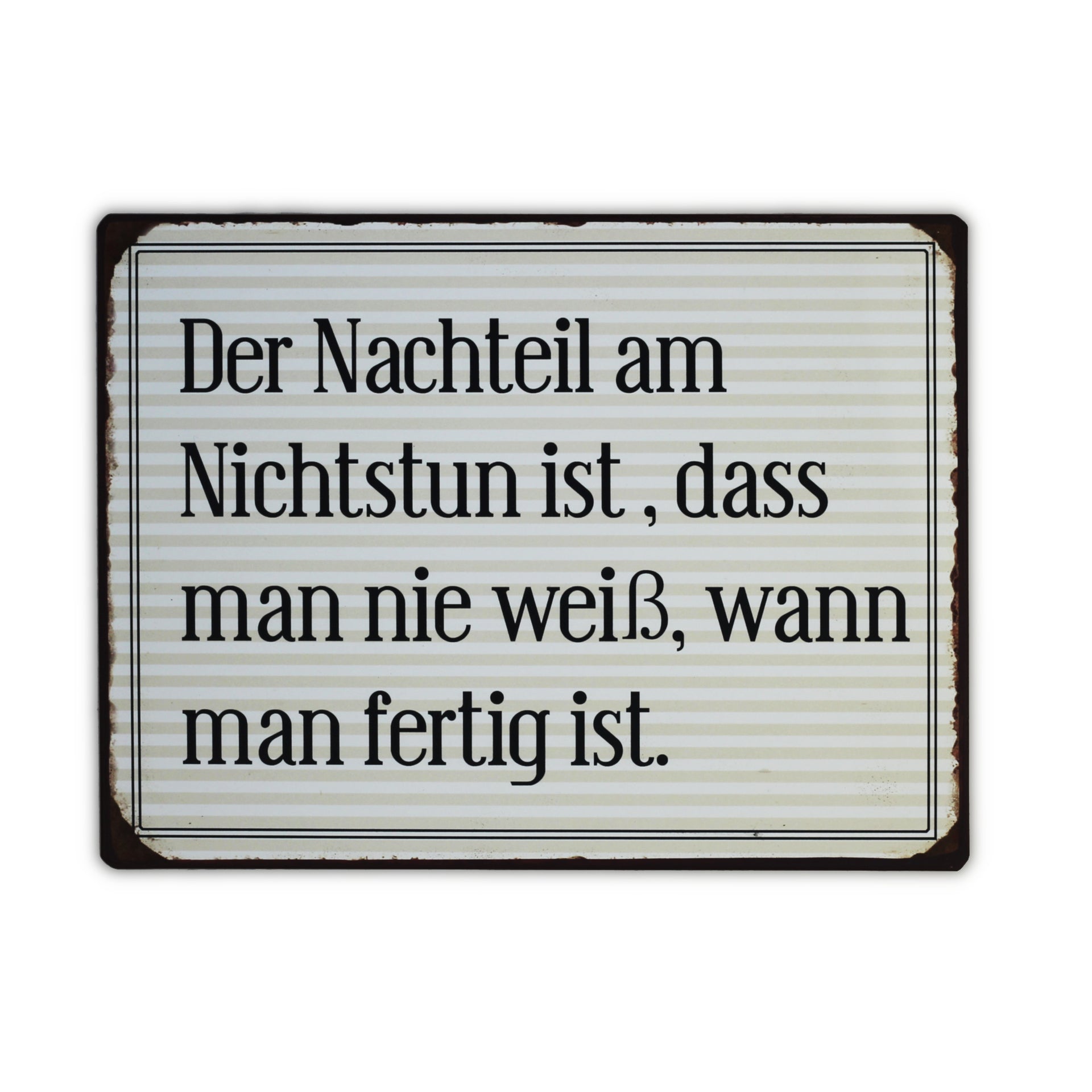 Blechschild: Der Nachteil am Nichtsun ist, dass man nie weiss, wann man fertig ist.