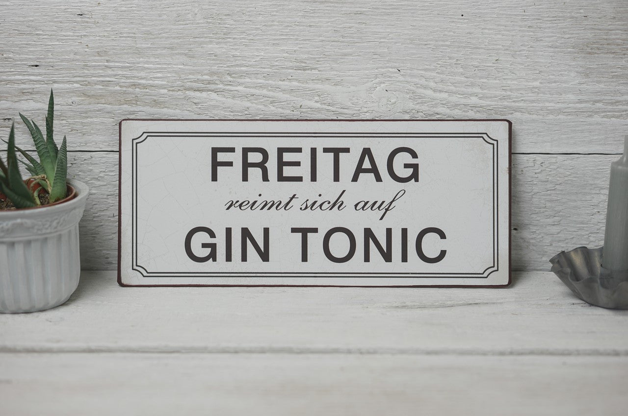 Blechschild: Freitag reimt sich auf Gin Tonic