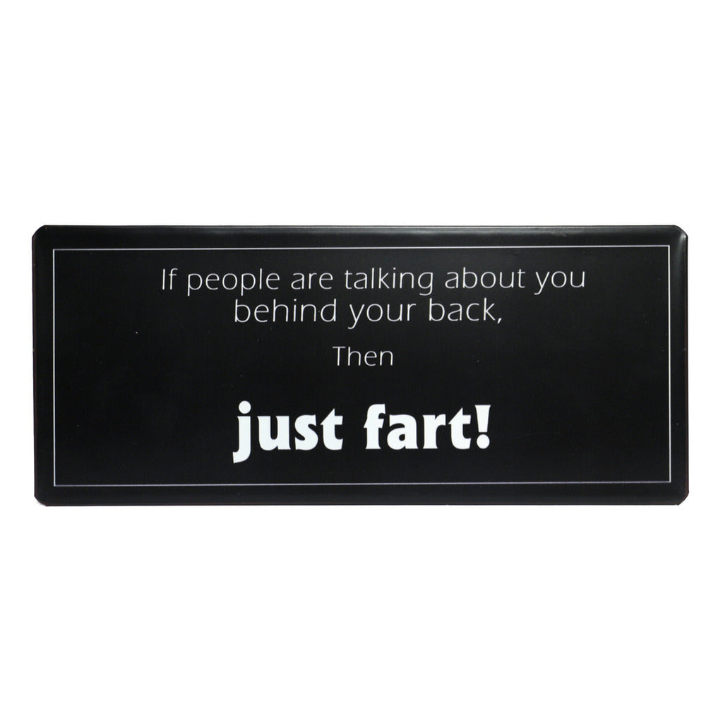 Schild mit dem Text "If people are talking about you behind your back, then just fart!". Kann mit zwei Nägeln aufgehängt werden.
