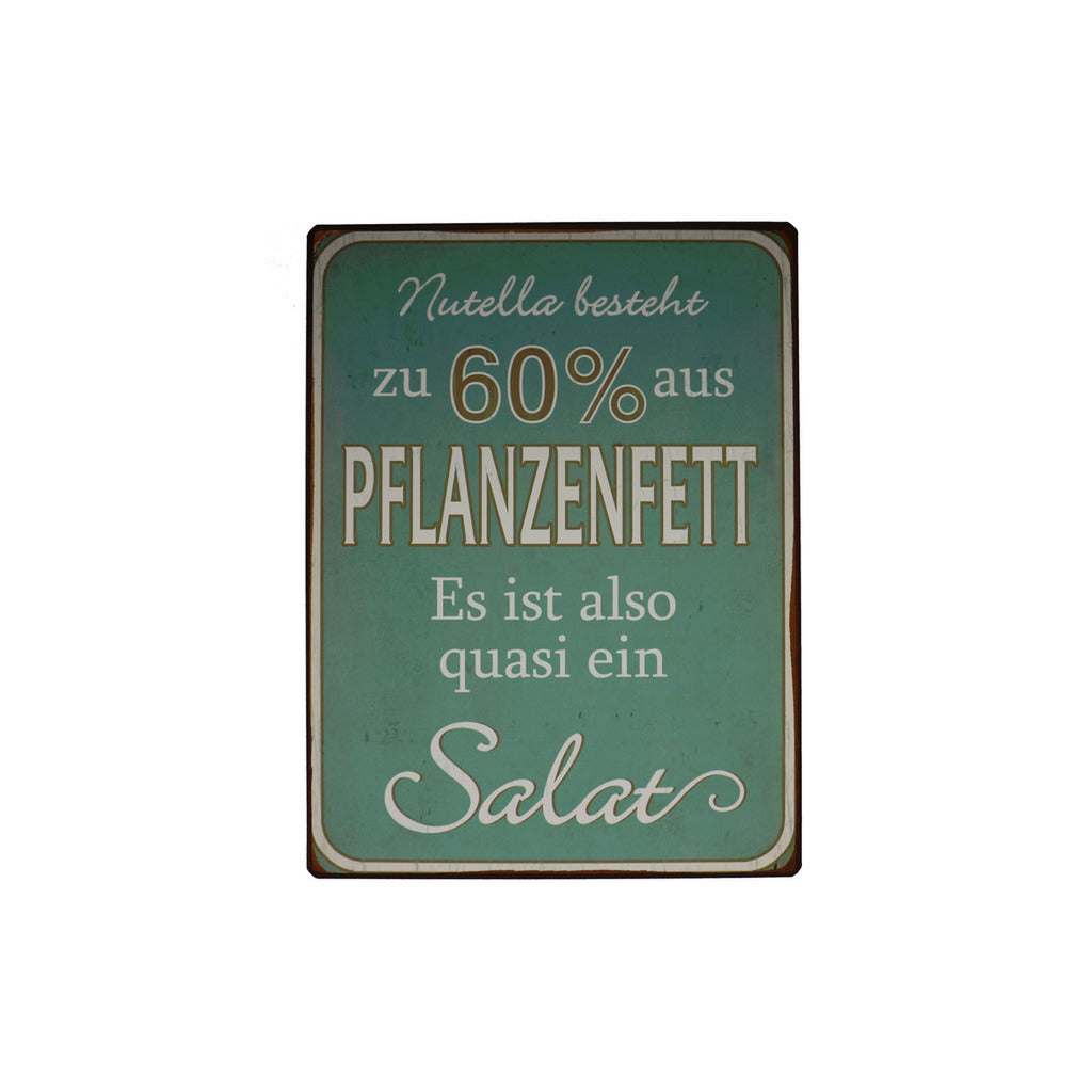 Blechschild: Nutella besteht zu 60% aus Pflanzenfett - Es ist also quasi ein Salat