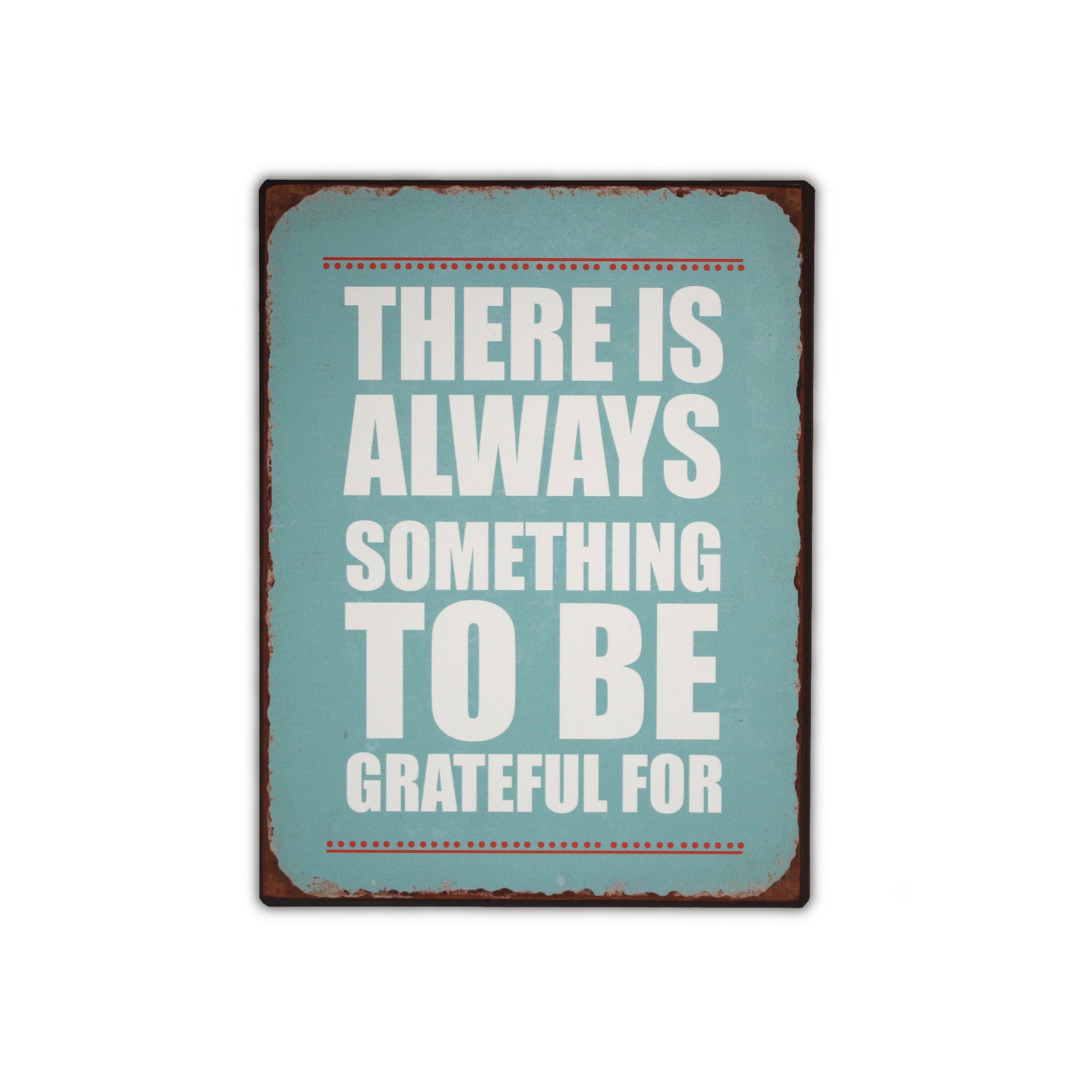 Schild aus Blech mit dem Spruch: There is always something to be grateful for. Kann mit zwei Nägeln aufgehängt werden.