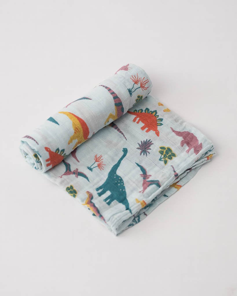 Cotton Muslin Swaddle: "Embroidosaurus" Jurassic World Edition von Little Unicorn