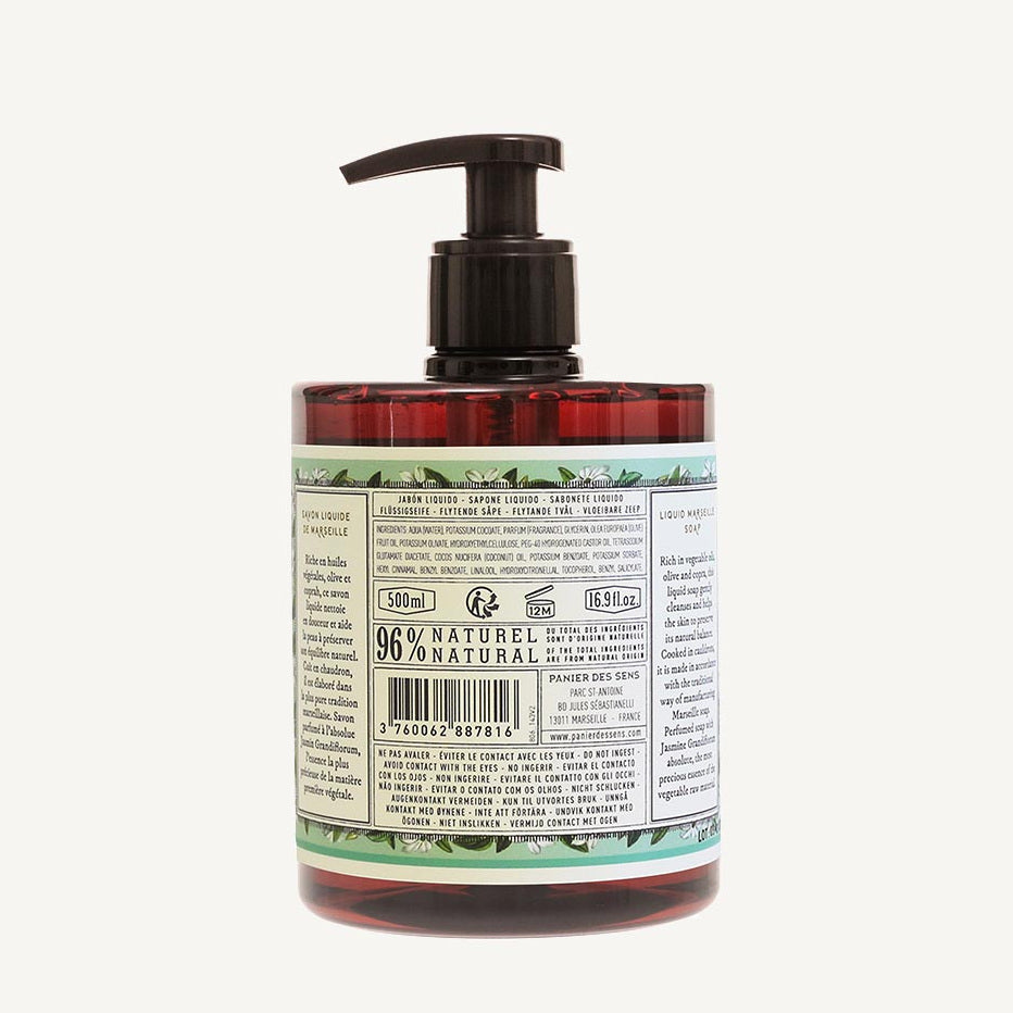 Jasmin Flüssigseife 500ml von Panier des Sens, hergestellt in Frankreich zu 96% aus Zutaten natürlichen Ursprungs.