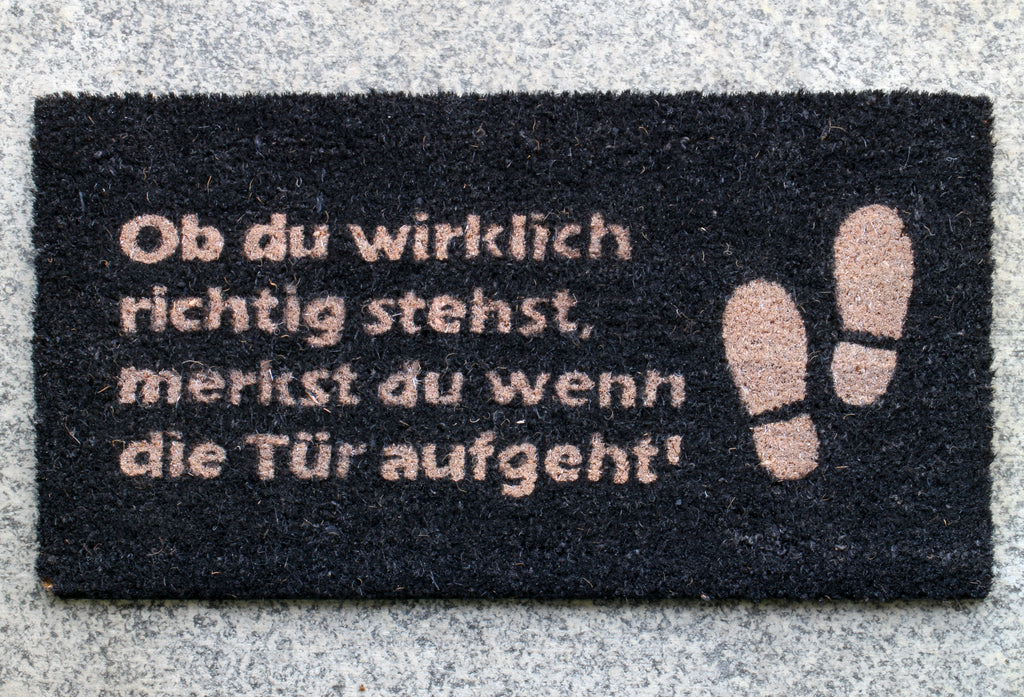 Fussmatte: Ob du wirklich richtig stehst, merkst du wenn die Tür aufgeht!