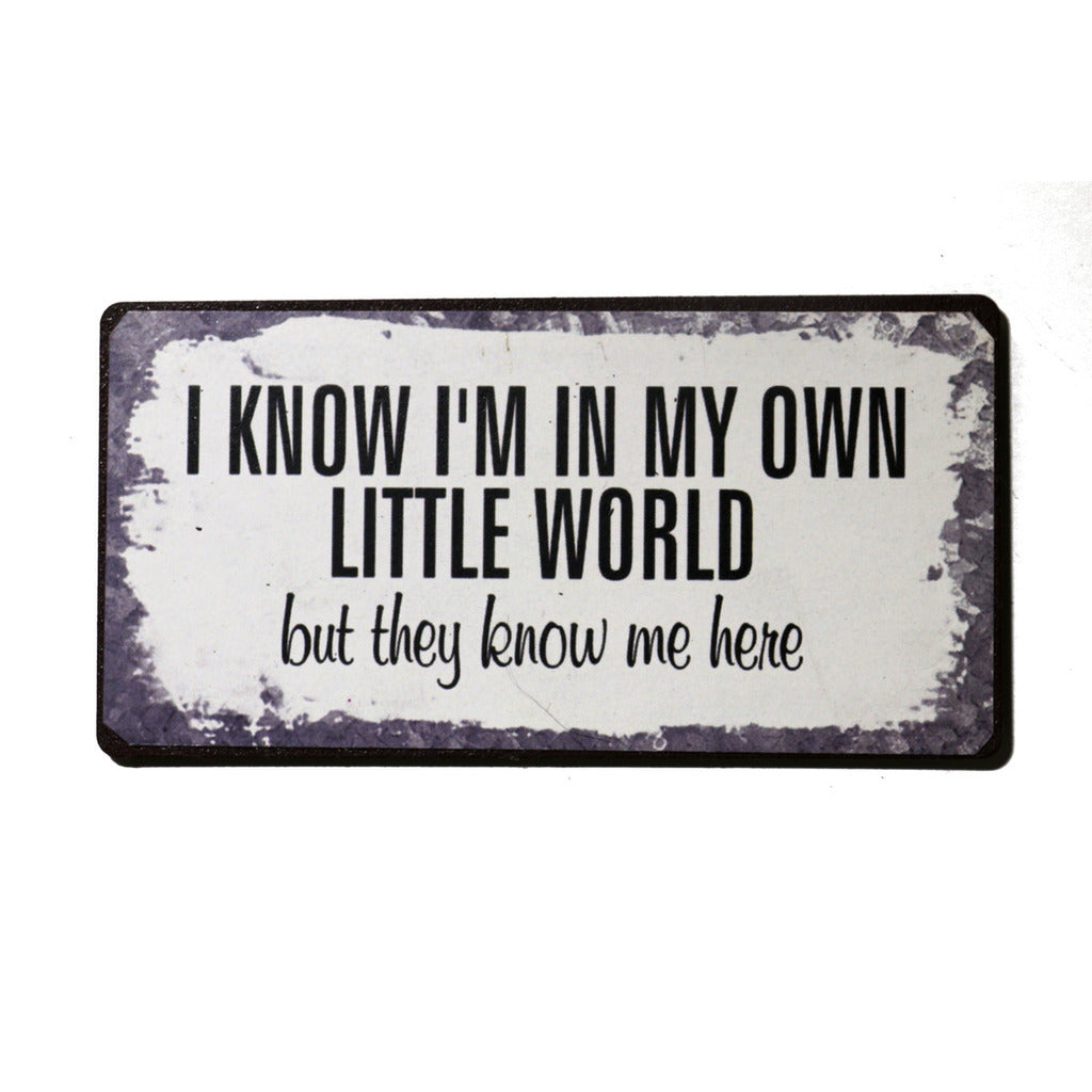 Magnet mit der Aufschrift I know I'm in my own little world. But they know me here
