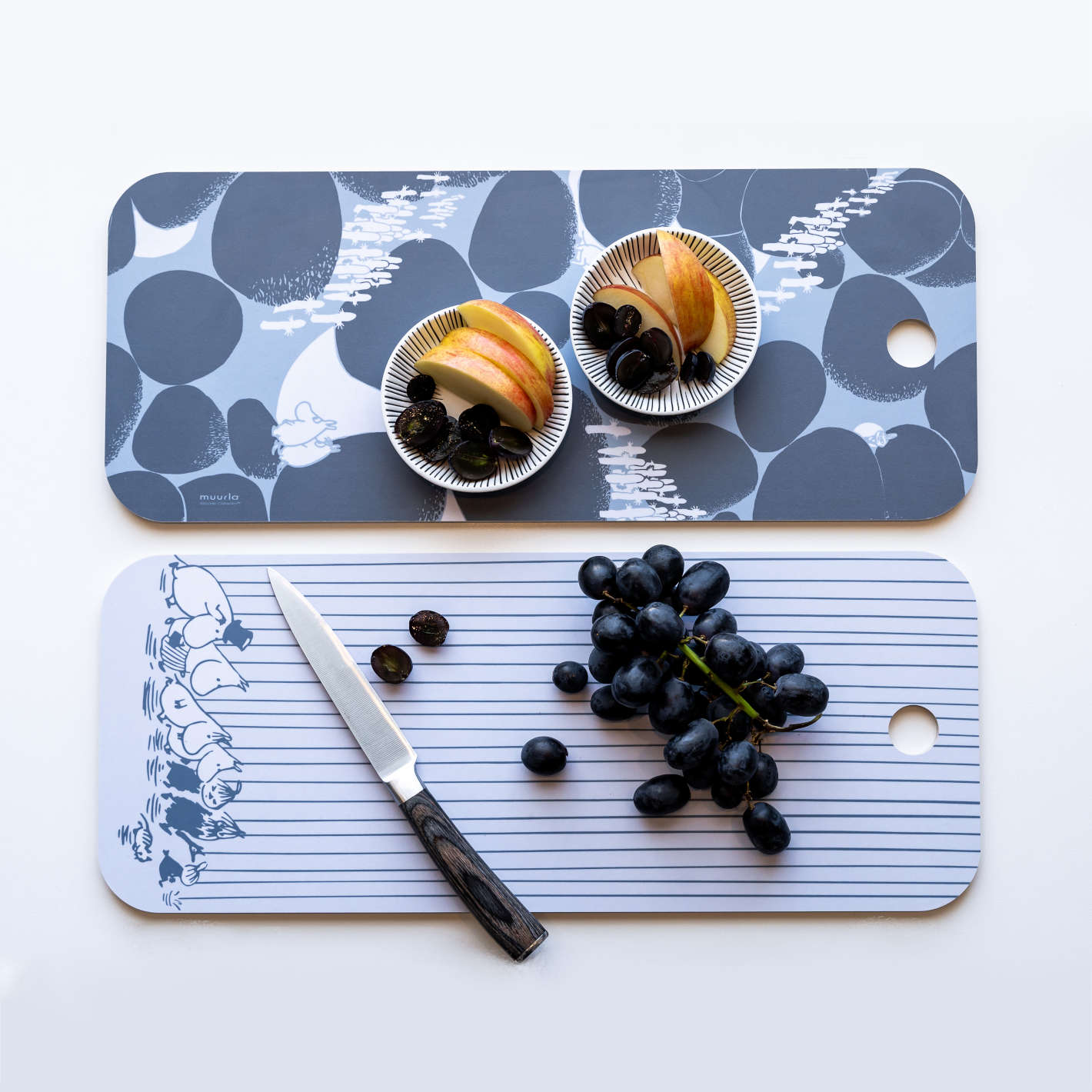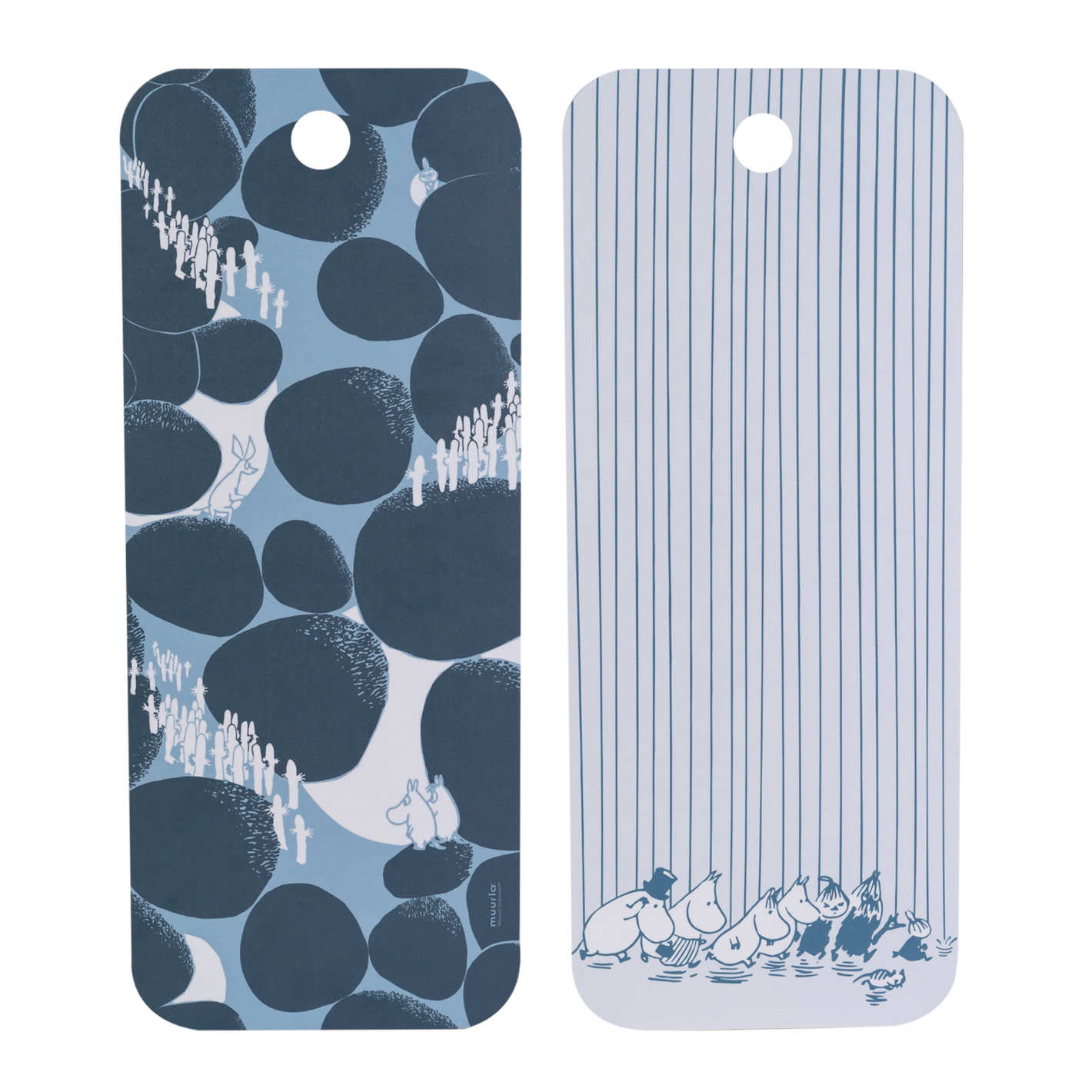 Und, wer kennt sie nicht: Die Mumins, die nilpferdartigen Trollwesen die mit ihren Freunden im idyllischen Mumintal irgendwo in Finnland leben. Die illustrierte Märchenfigur von der finnischen Kinderbuchautorin Tove Jansson wurde hier wunderschön auf beiden Seiten des Bretts vom finnischen Hersteller Muurla verewigt.