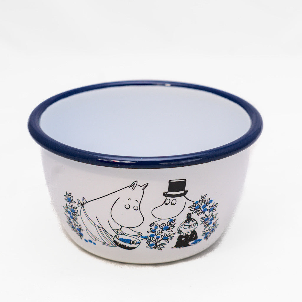 Schüssel aus Emaille: Mumin Blueberries - Blaubeeren weiss von Muurla
