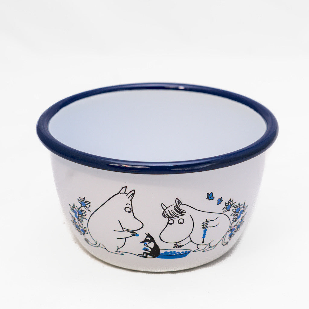 Wer kennt sie nicht: Die Mumin, die nilpferdartigen Trollwesen die im idyllischen Mumintal irgendwo in Finnland leben. Die illustrierte Märchenfigur von der finnischen Kinderbuchautorin Tove Jansson wurde hier wunderschön auf der Emailleschüssel vom finnischen Hersteller Muurla verewigt.