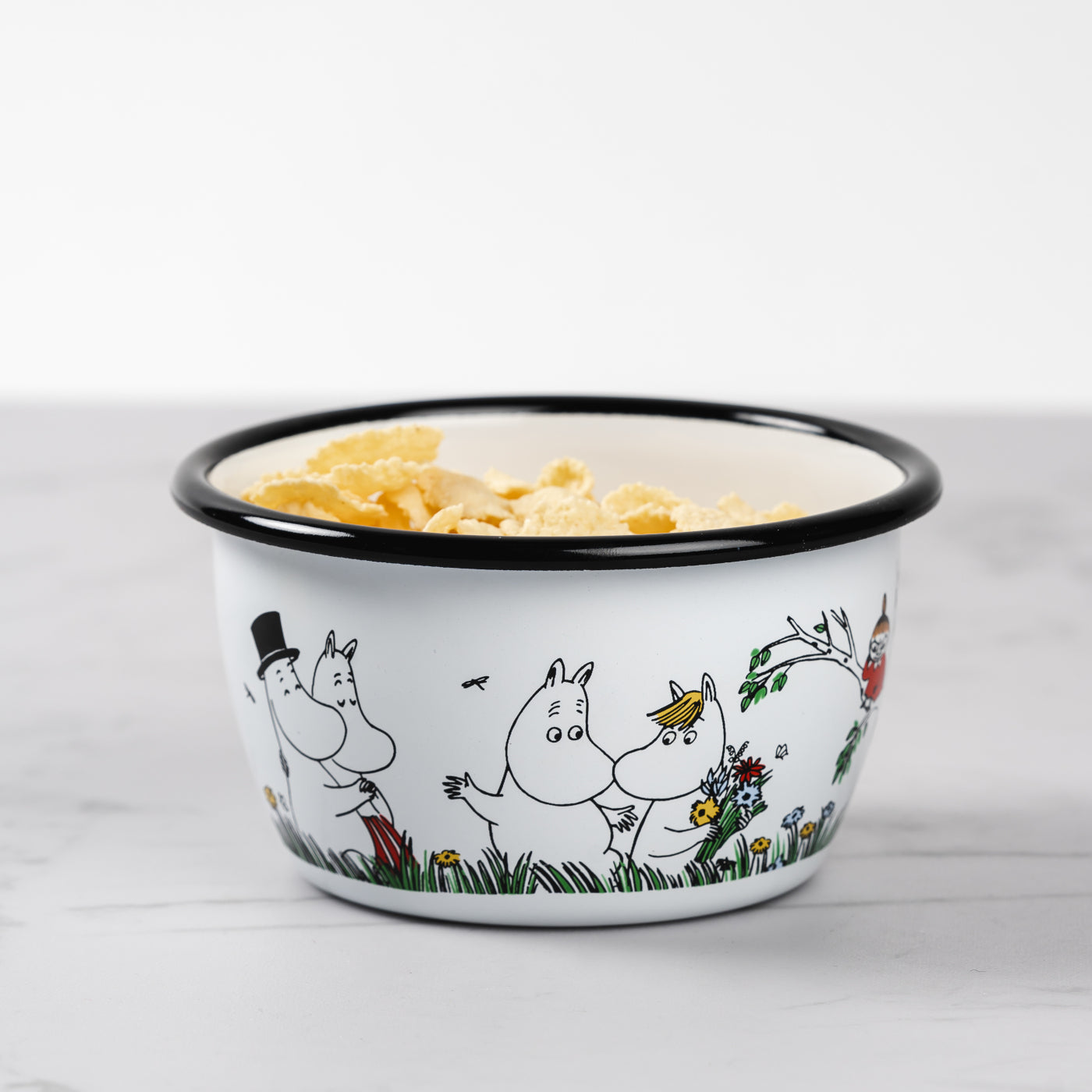 Schüssel aus Emaille: Mumin Colors - Happy Family weiss von Muurla