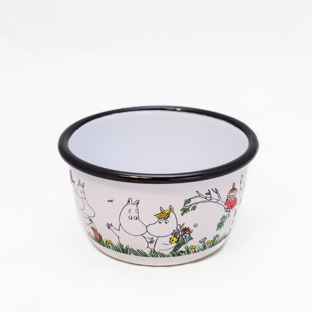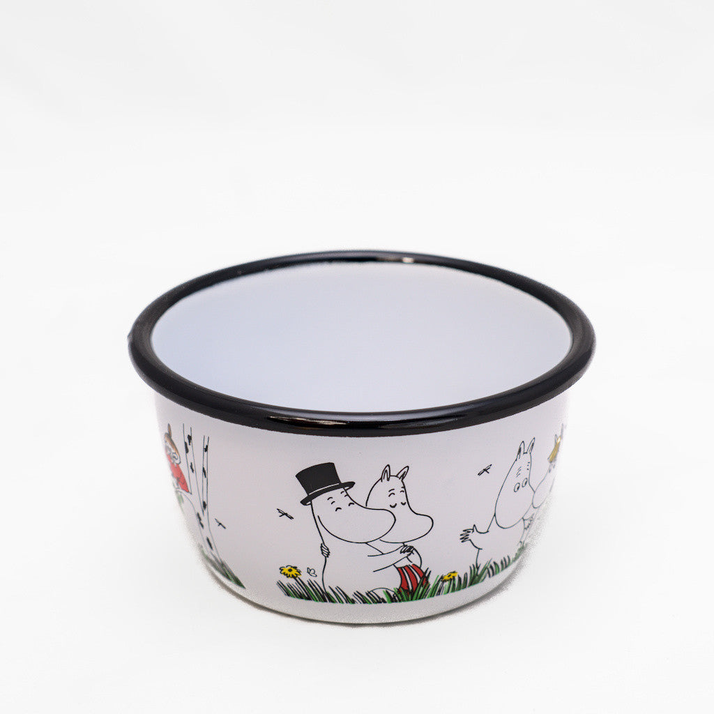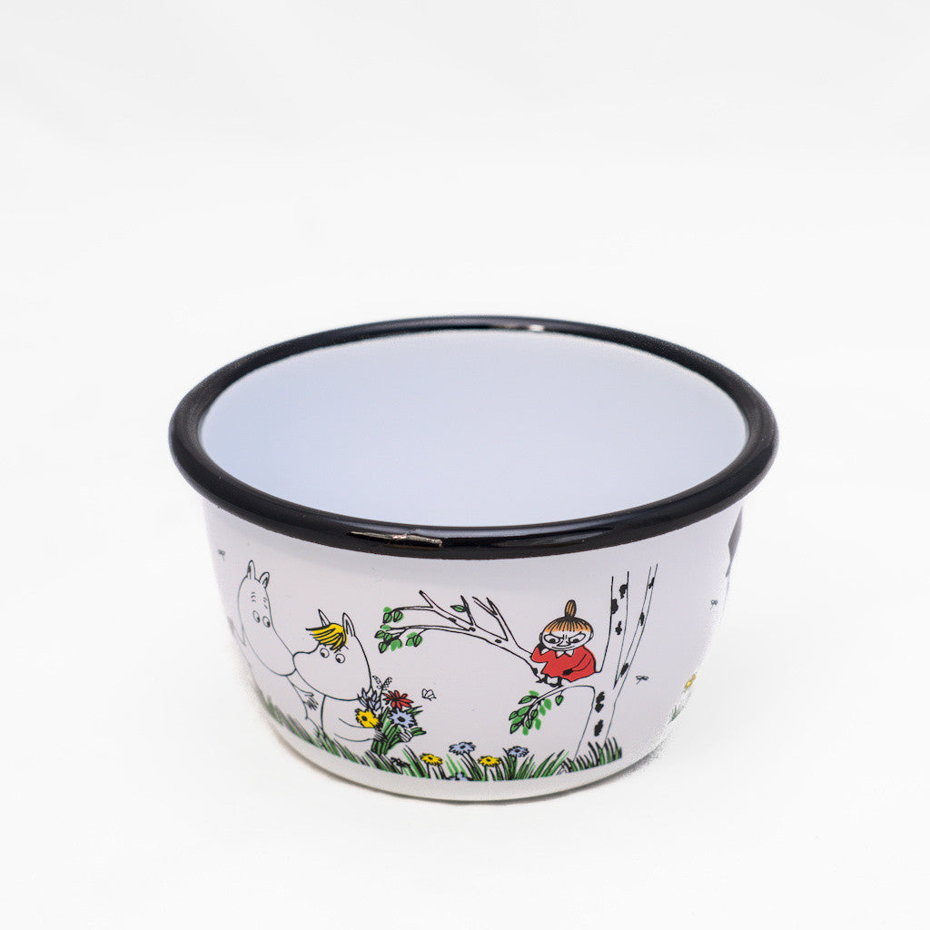 Wer kennt sie nicht: Die Mumin, die nilpferdartigen Trollwesen die im idyllischen Mumintal irgendwo in Finnland leben. Die illustrierte Märchenfigur von der finnischen Kinderbuchautorin Tove Jansson wurde hier wunderschön auf der Emailleschüssel vom finnischen Hersteller Muurla verewigt.