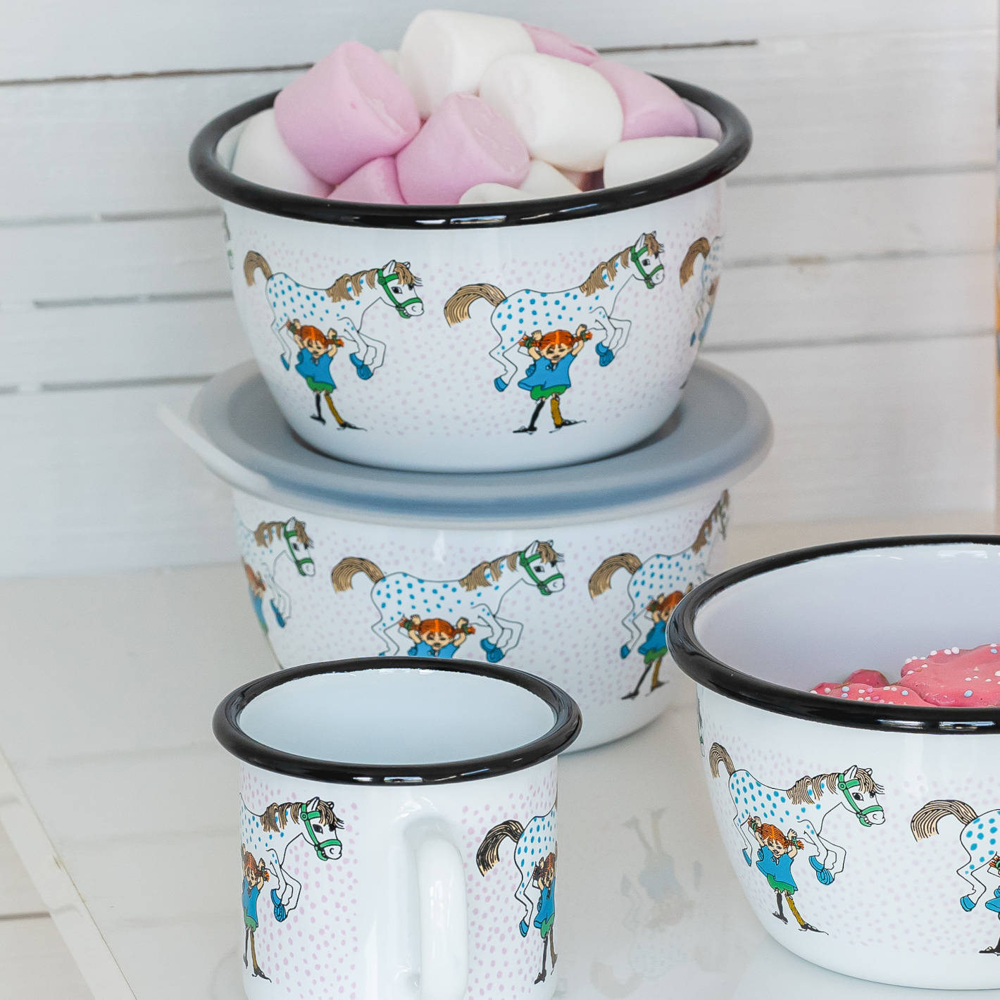 Schüssel aus Emaille: Pippi Langstrumpf, Pippi und das Pferd weiss von Muurla