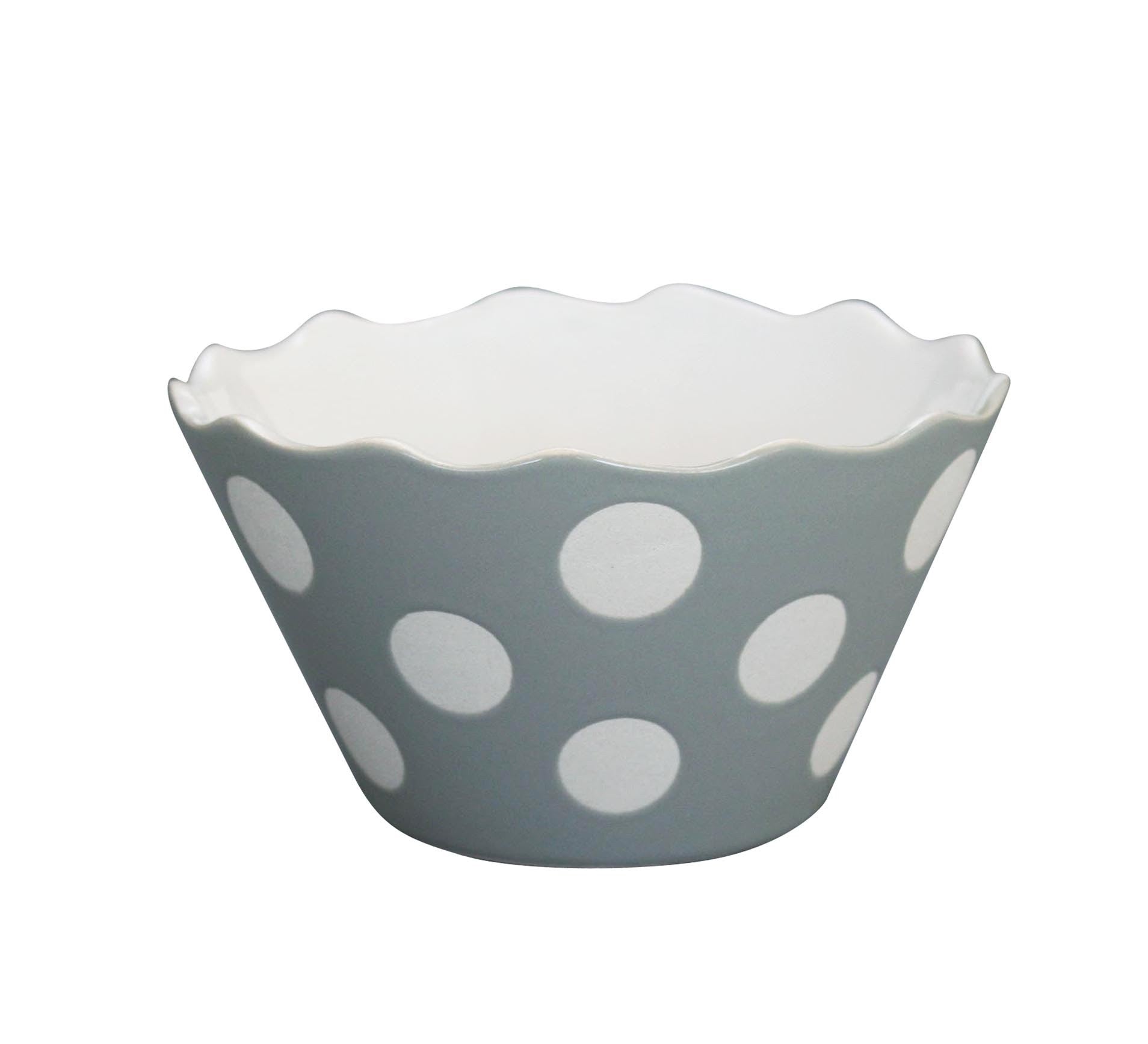 Keramikschüssel in licht-grau mit grossen, weissen Punkten der Serie "HappyStars" vom dänischen Label Krasilnikoff.
