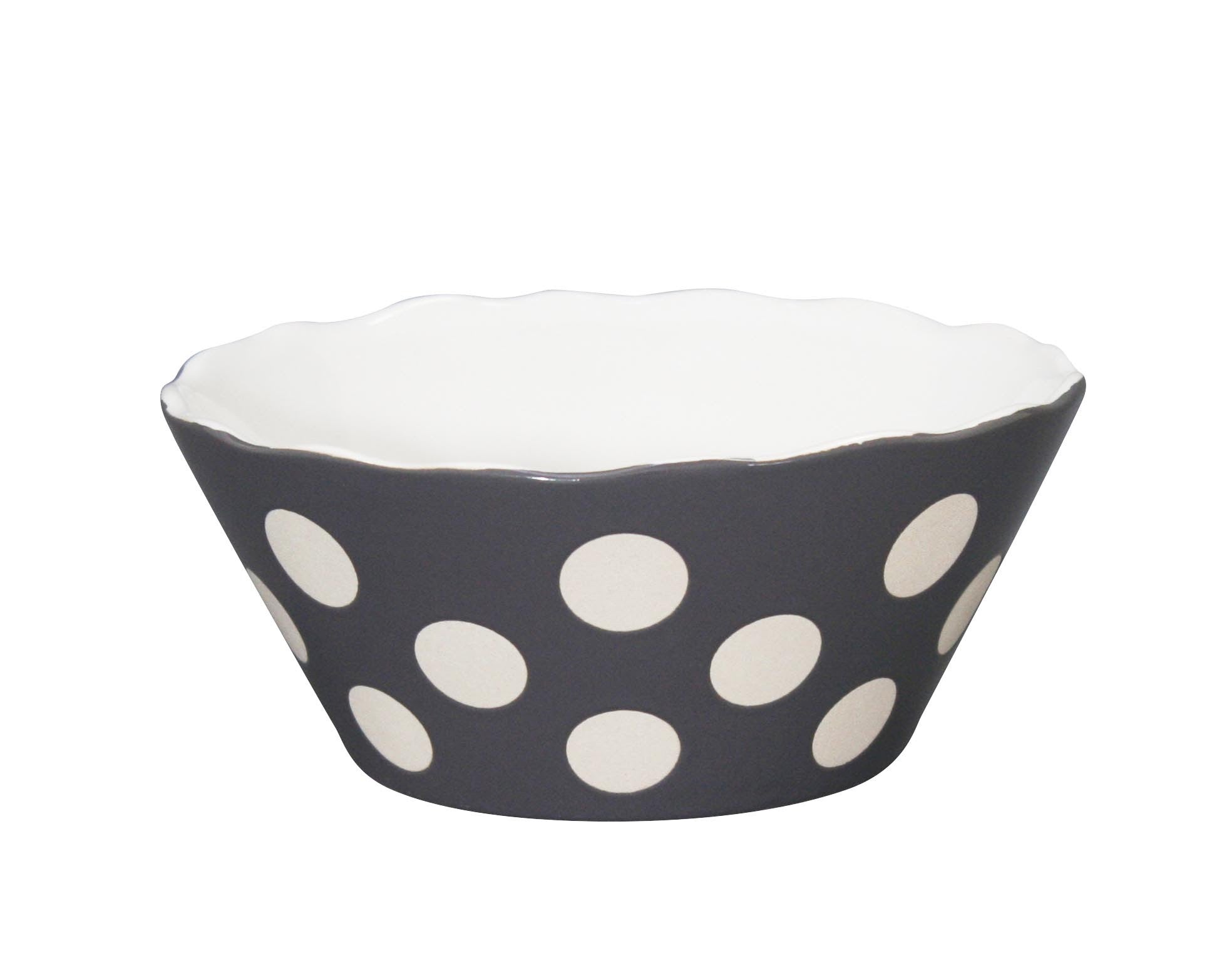 Keramikschüssel in charcoal/ schiefergrau mit grossen, weissen Punkten der Serie "HappyStars" vom dänischen Label Krasilnikoff.