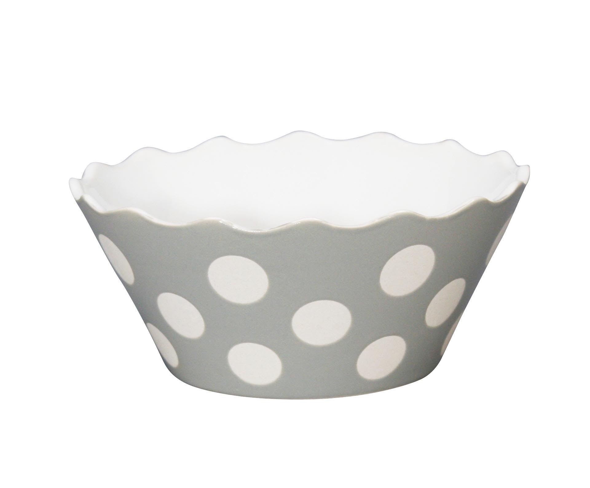Keramikschüssel in licht-grau mit grossen, weissen Punkten der Serie "HappyStars" vom dänischen Label Krasilnikoff.
