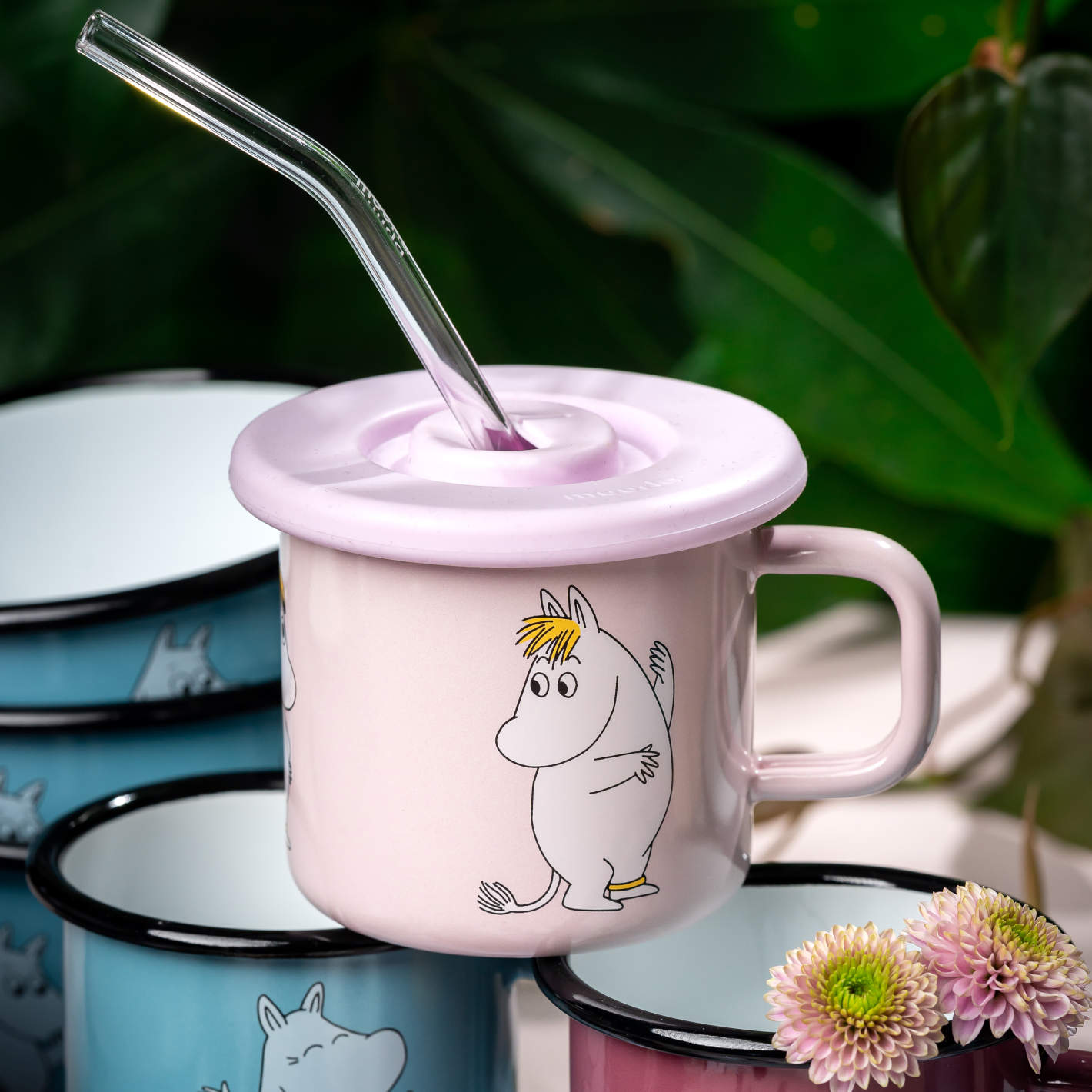 Silikondeckel: Rosa 9.5 cm mit Trinkhalmöffnung für 3.7 dl Tassen von Muurla