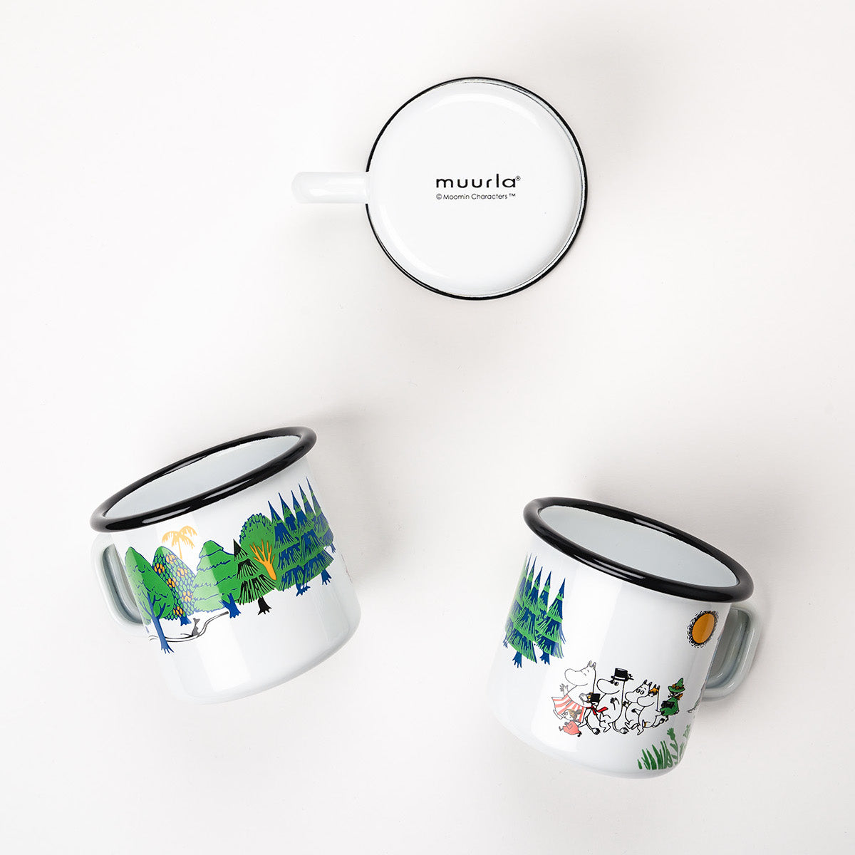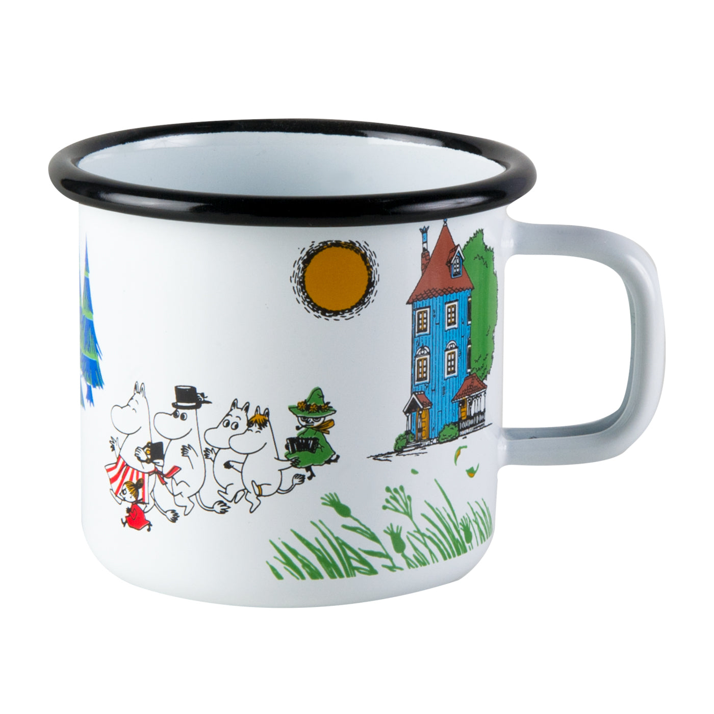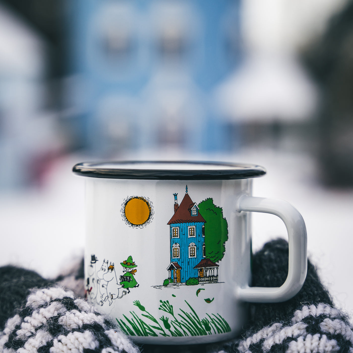Wer kennt sie nicht: Die Mumin, die nilpferdartigen Trollwesen die im idyllischen Mumintal irgendwo in Finnland leben. Die illustrierten Märchenfiguren von der finnischen Kinderbuchautorin Tove Jansson wurden hier wunderschön auf der Emailletasse vom finnischen Hersteller Muurla verewigt.