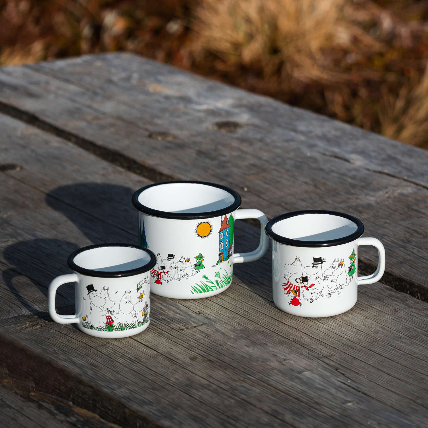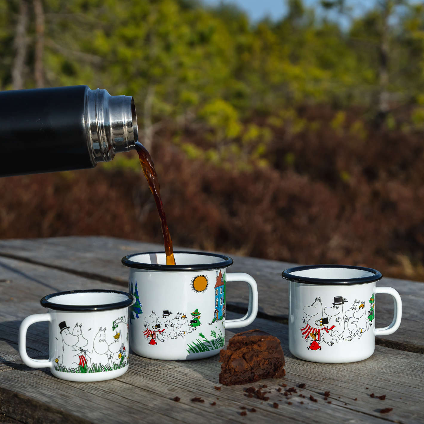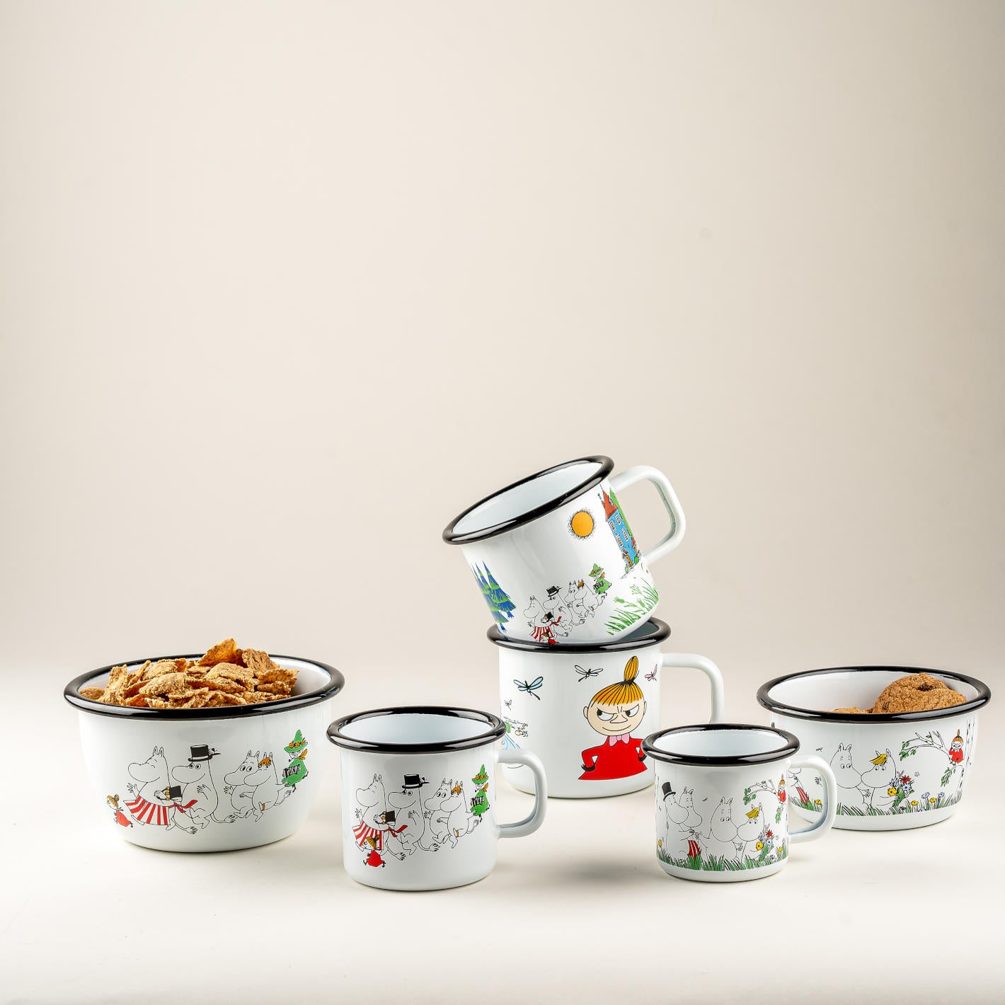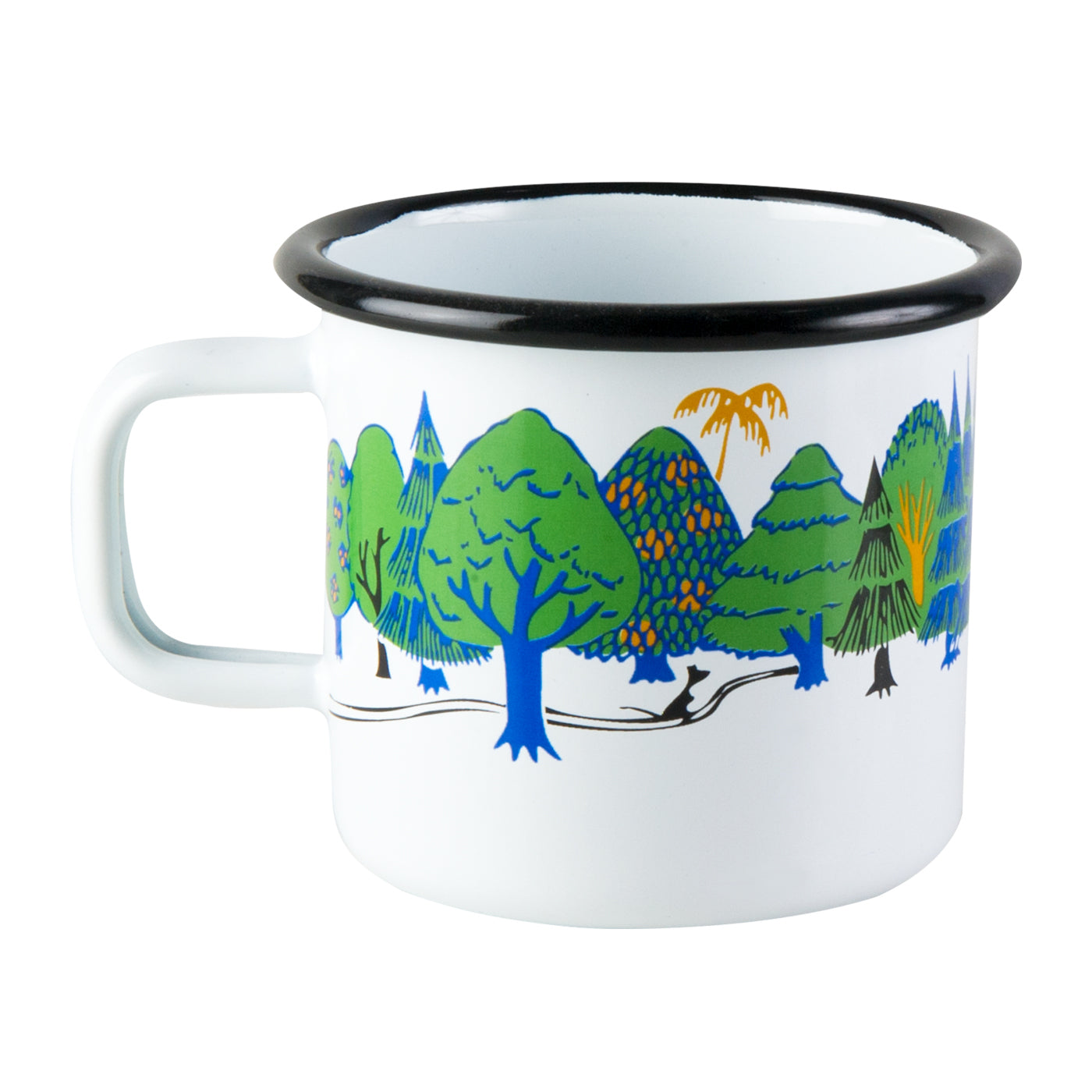 Wer kennt sie nicht: Die Mumin, die nilpferdartigen Trollwesen die im idyllischen Mumintal irgendwo in Finnland leben. Die illustrierten Märchenfiguren von der finnischen Kinderbuchautorin Tove Jansson wurden hier wunderschön auf der Emailletasse vom finnischen Hersteller Muurla verewigt.