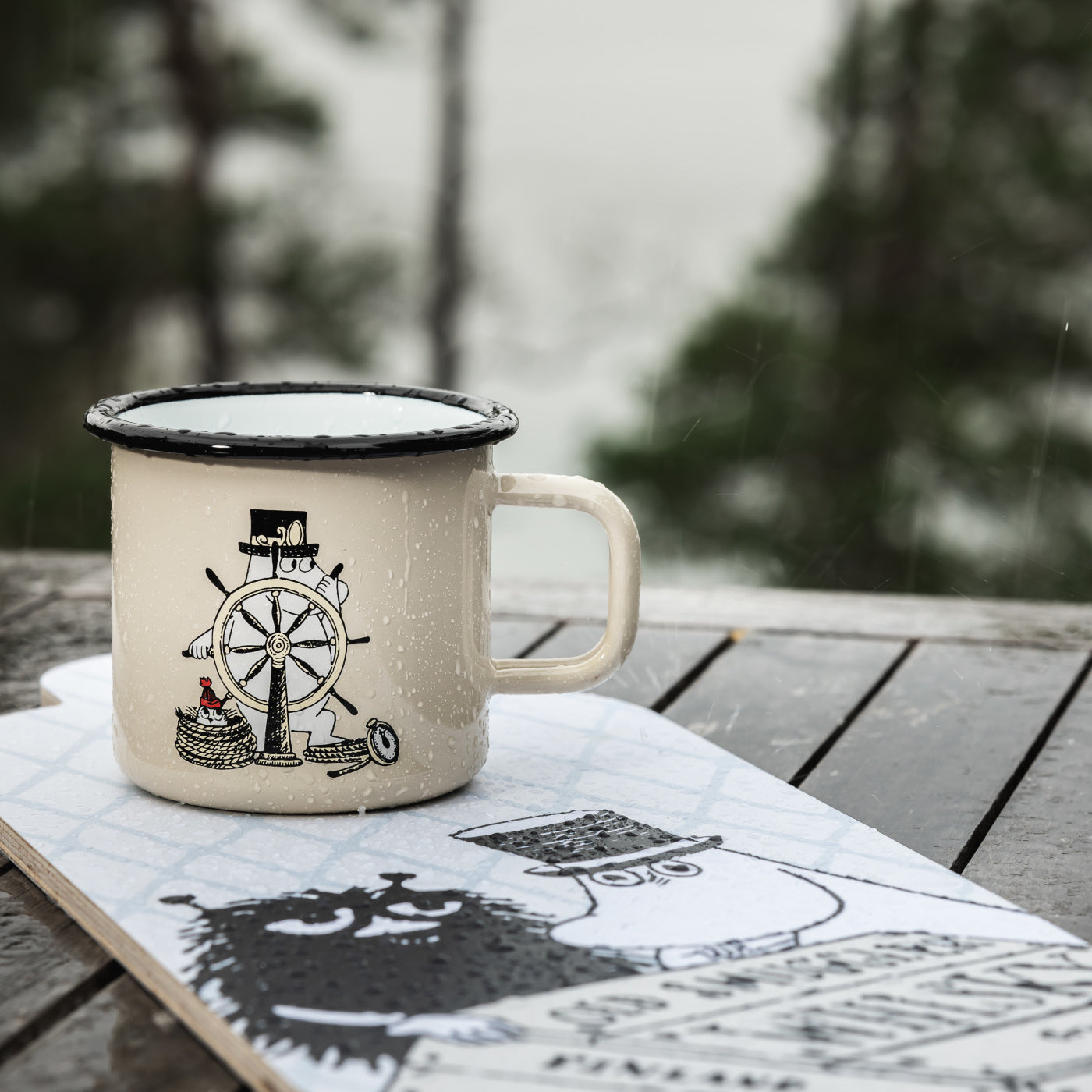 Wer kennt sie nicht: Die Mumin, die nilpferdartigen Trollwesen die im idyllischen Mumintal irgendwo in Finnland leben. Die illustrierten Märchenfiguren von der finnischen Kinderbuchautorin Tove Jansson wurden hier wunderschön auf der Emailletasse vom finnischen Hersteller Muurla verewigt.