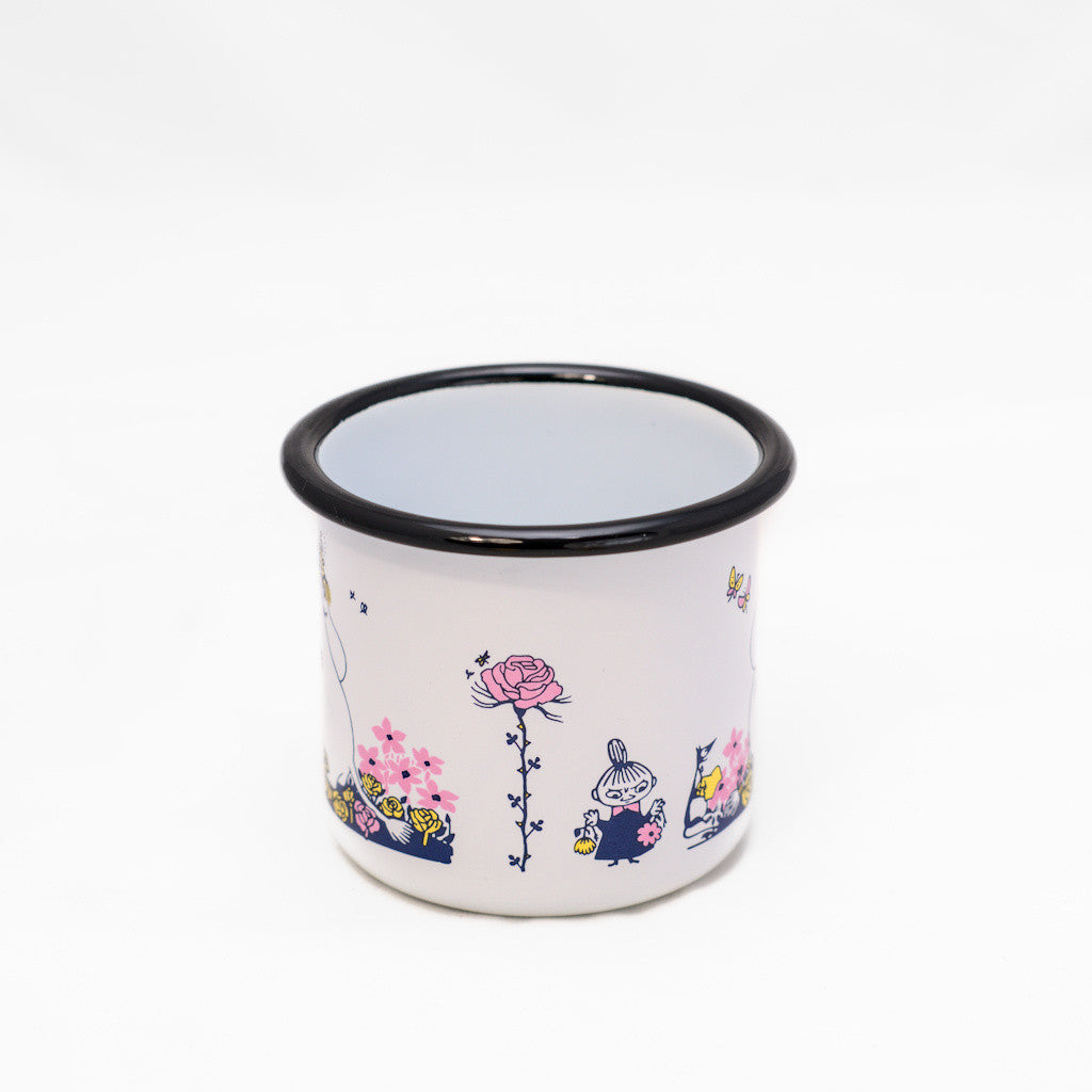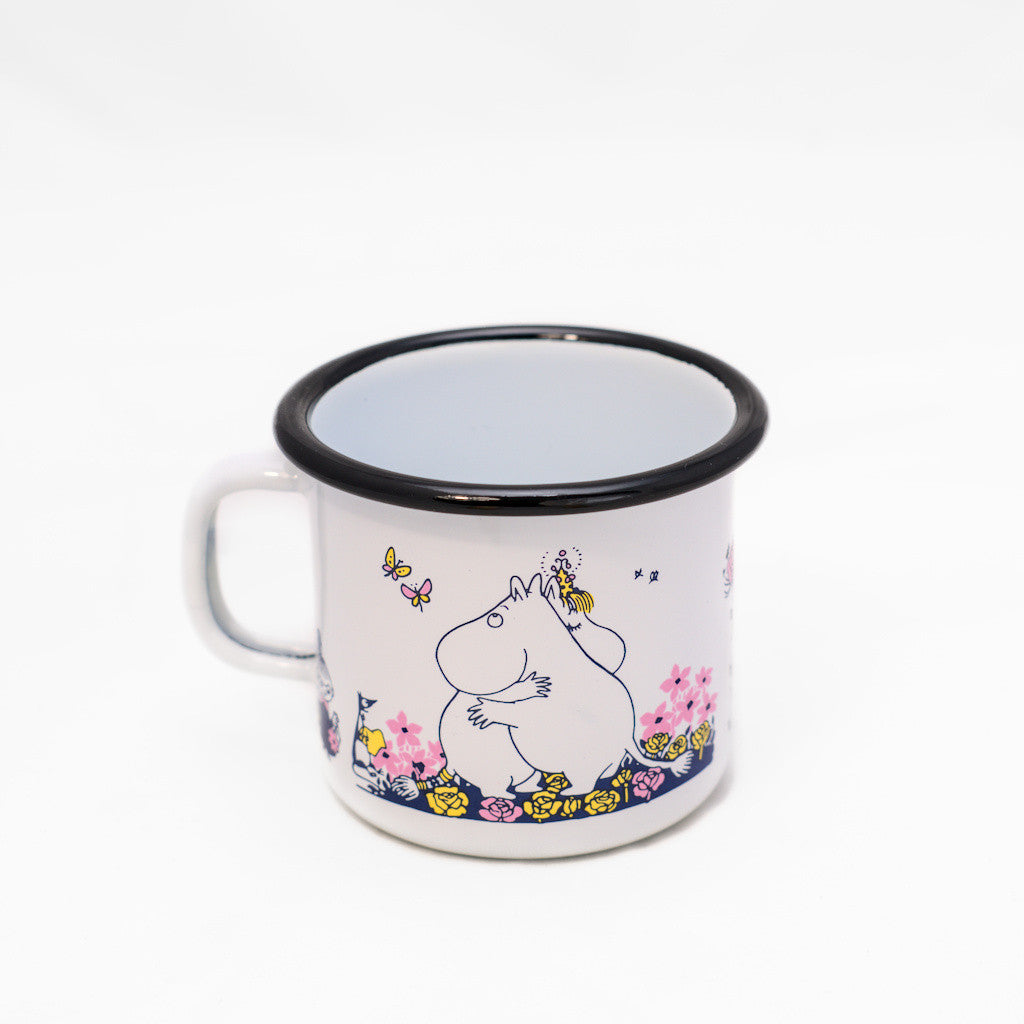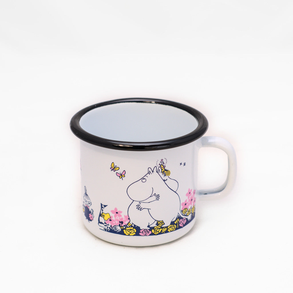 Wer kennt sie nicht: Die Mumin, die nilpferdartigen Trollwesen die im idyllischen Mumintal irgendwo in Finnland leben. Die illustrierte Märchenfigur von der finnischen Kinderbuchautorin Tove Jansson wurde hier wunderschön auf der Emailletasse vom finnischen Hersteller Muurla verewigt.