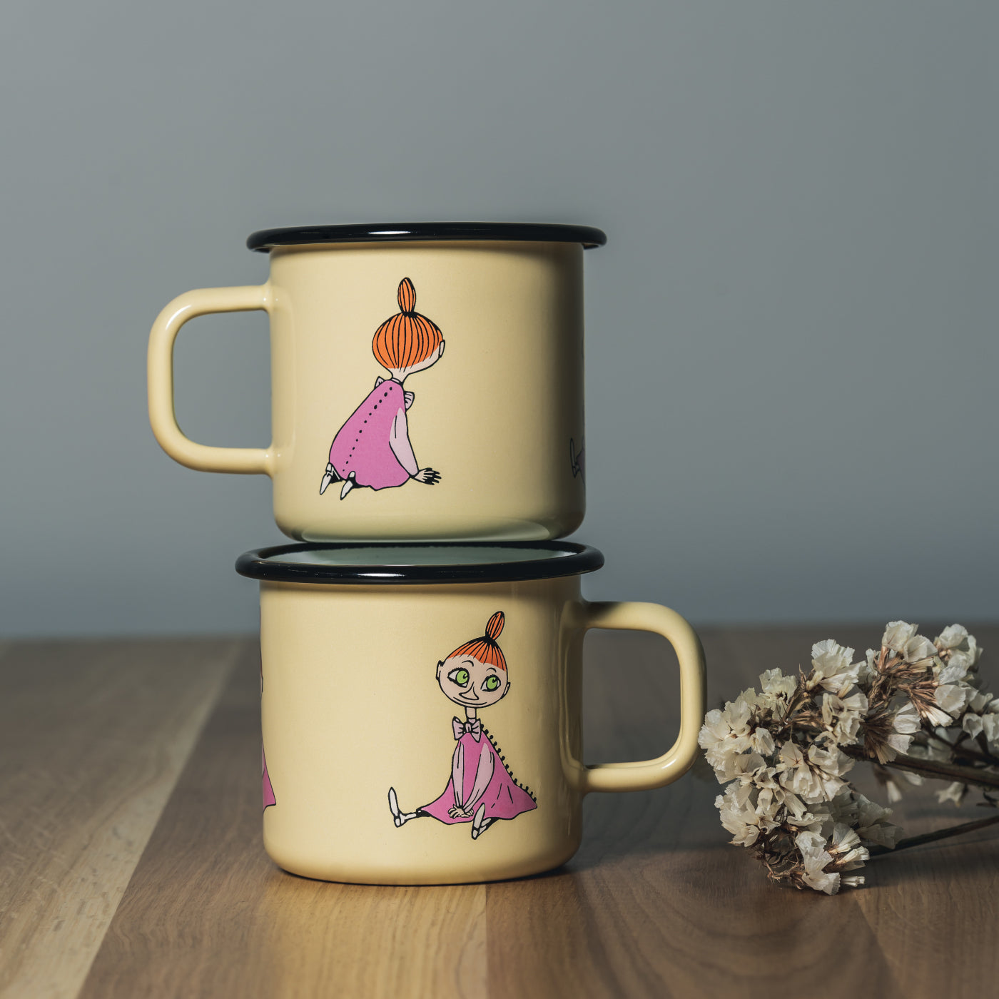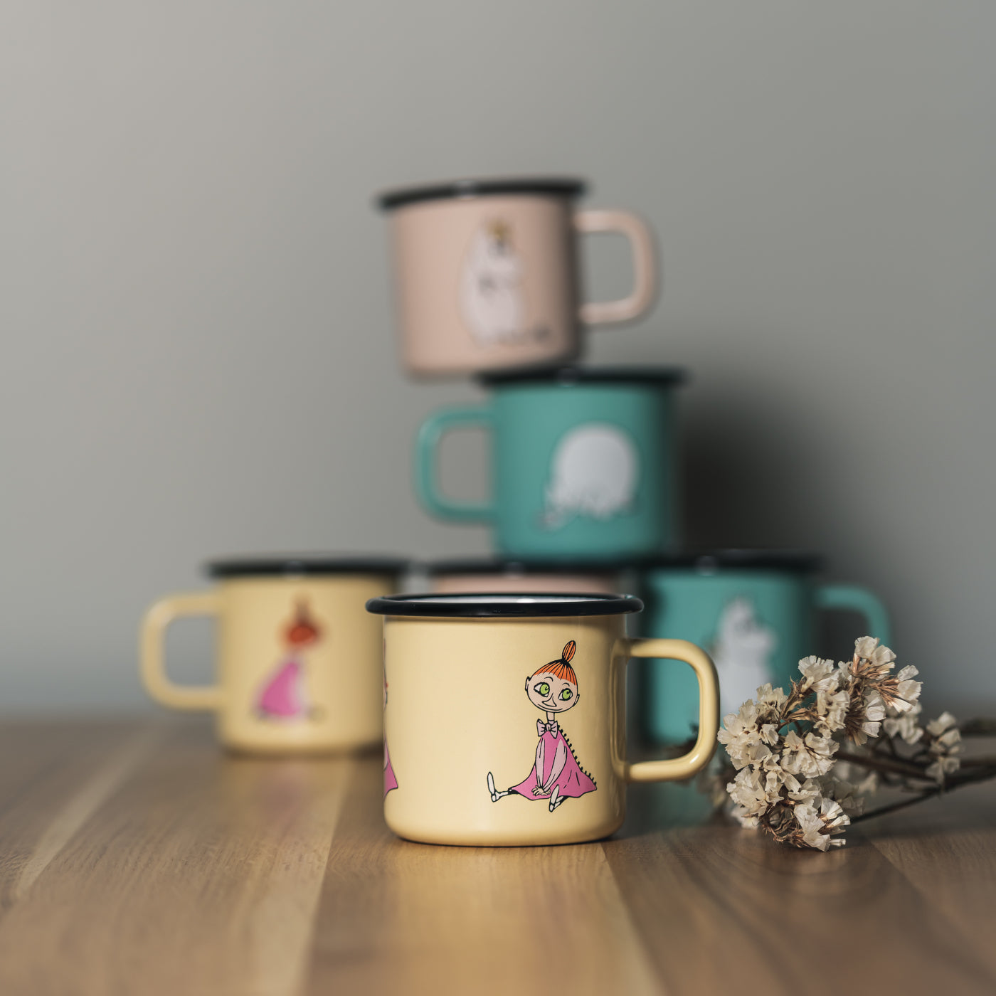 Wer kennt sie nicht: Die Mumin, die nilpferdartigen Trollwesen und ihre Freunde, die im idyllischen Mumintal irgendwo in Finnland leben. Die illustrierte Märchenfigur von der finnischen Kinderbuchautorin Tove Jansson wurde hier wunderschön auf der Emailletasse vom finnischen Hersteller Muurla verewigt.