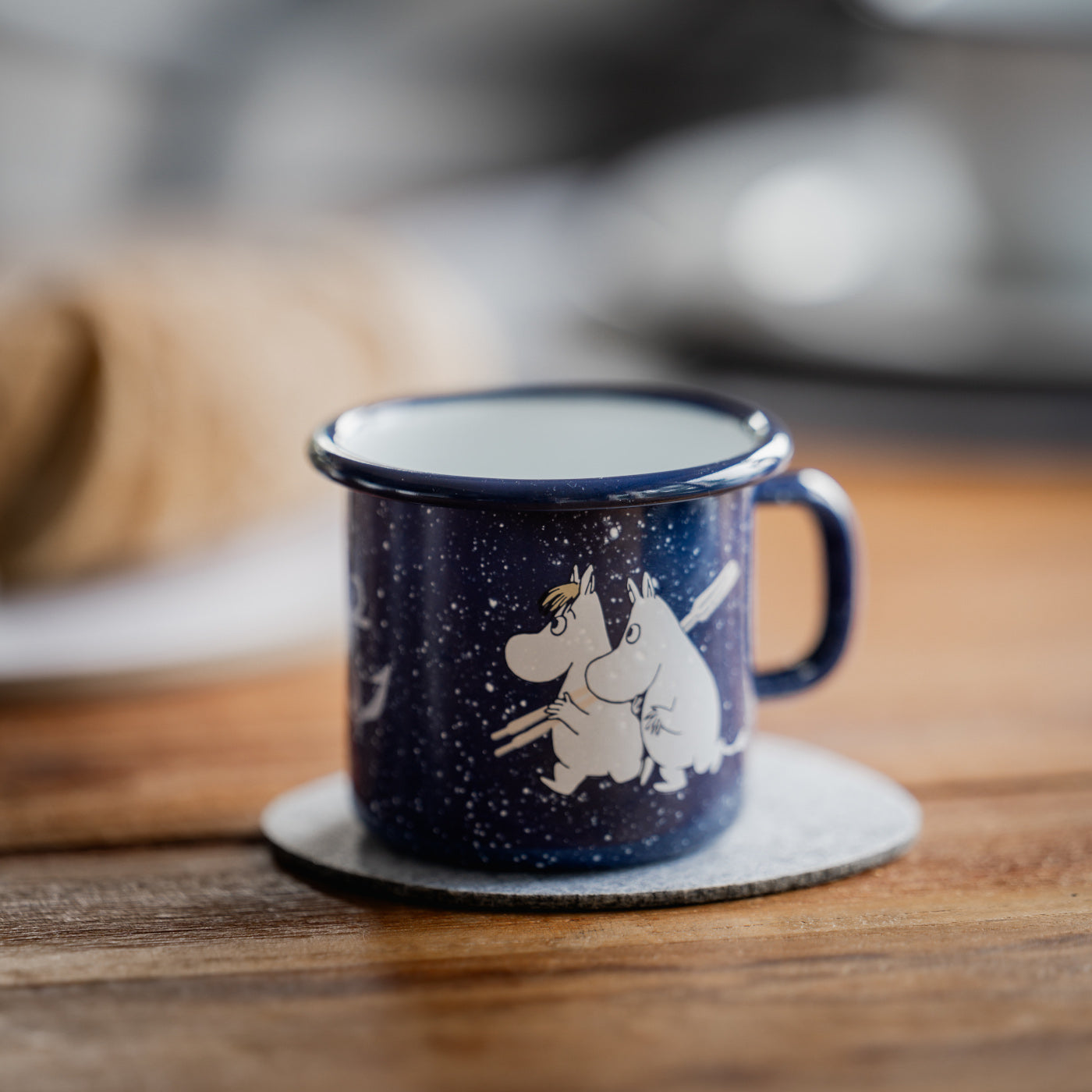 Wer kennt sie nicht: Die Mumin, die nilpferdartigen Trollwesen die im idyllischen Mumintal irgendwo in Finnland leben. Die illustrierten Märchenfiguren von der finnischen Kinderbuchautorin Tove Jansson wurden hier wunderschön auf der Emailletasse vom finnischen Hersteller Muurla verewigt.