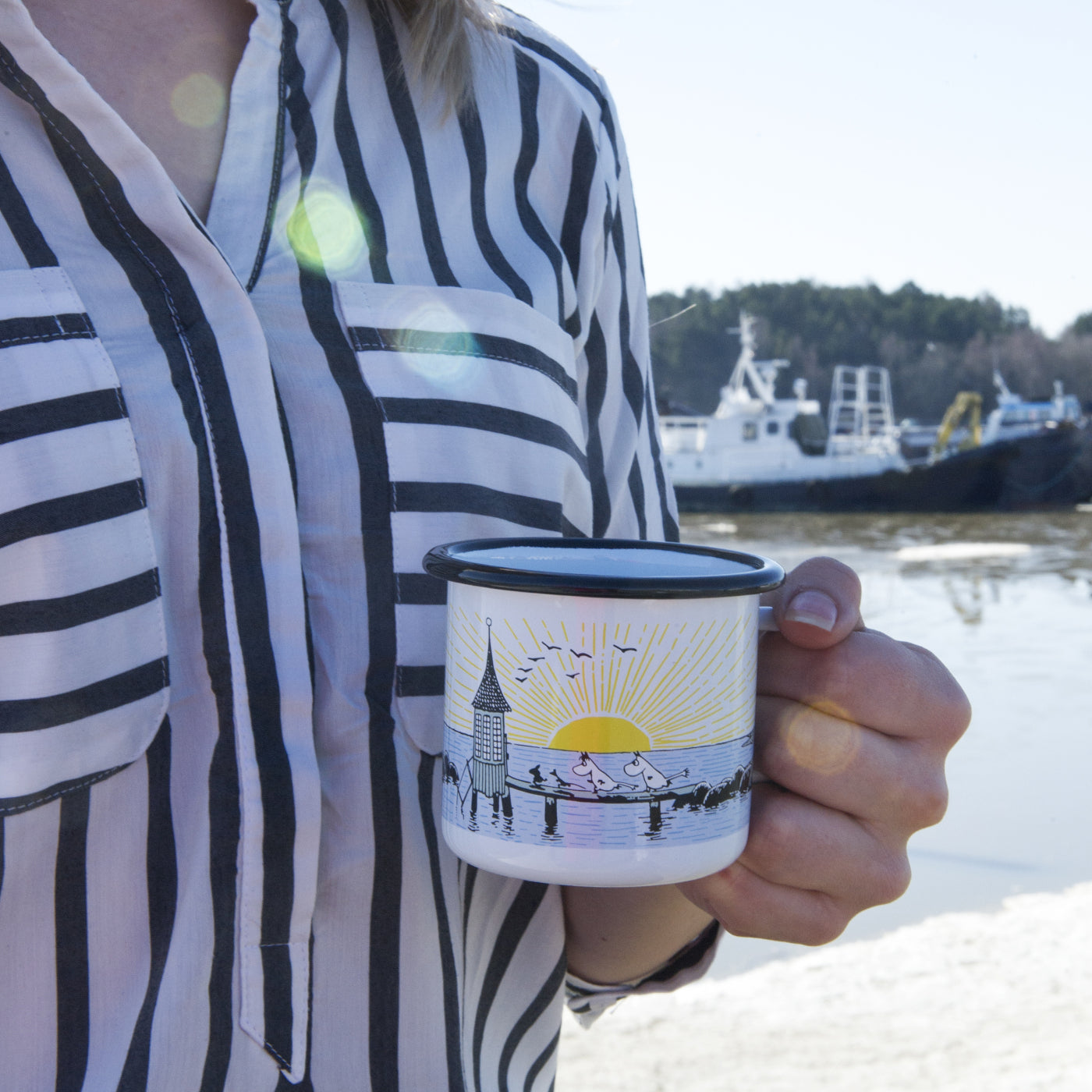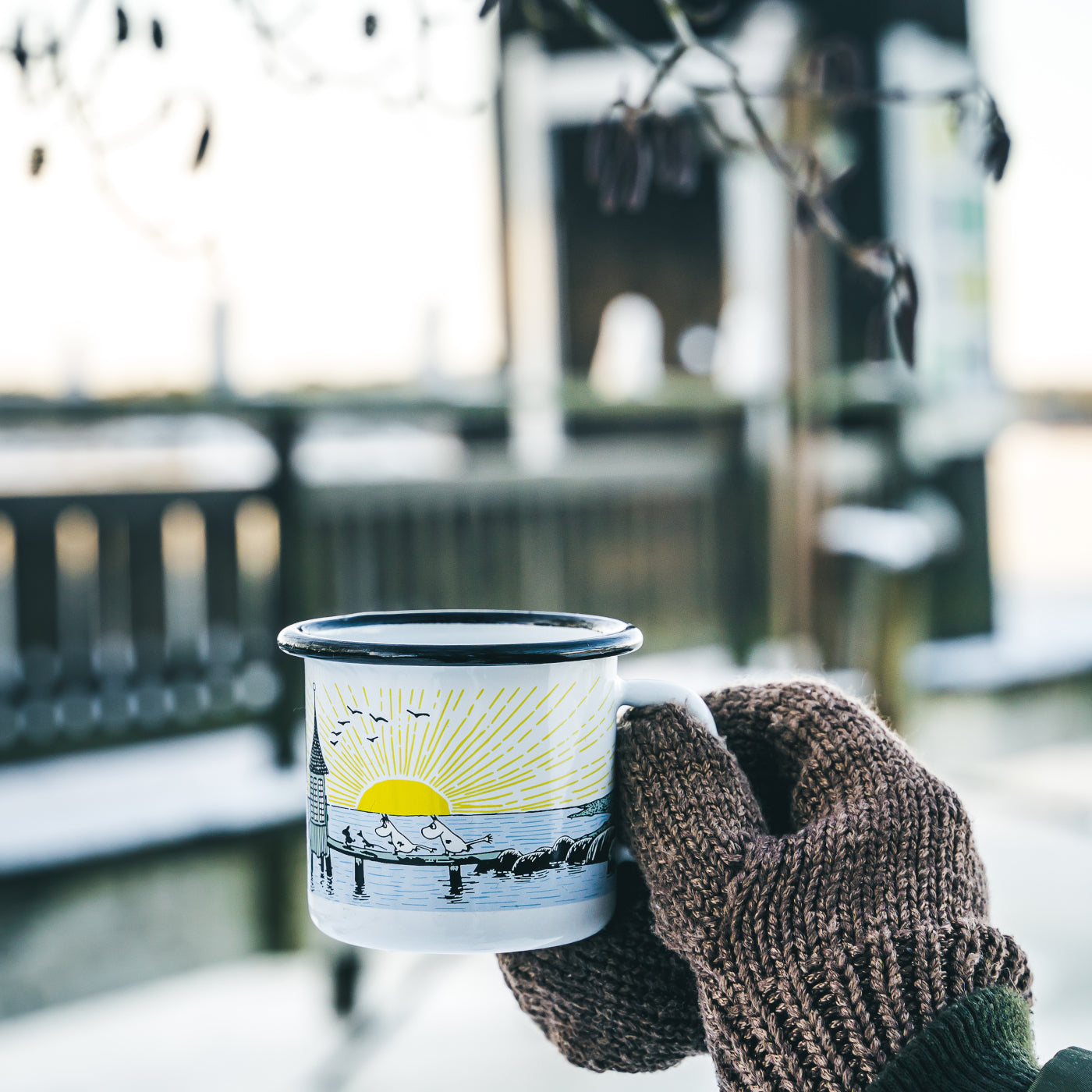 Wer kennt sie nicht: Die Mumin, die nilpferdartigen Trollwesen die im idyllischen Mumintal irgendwo in Finnland leben. Die illustrierten Märchenfiguren von der finnischen Kinderbuchautorin Tove Jansson wurden hier wunderschön auf der Emailletasse vom finnischen Hersteller Muurla verewigt.