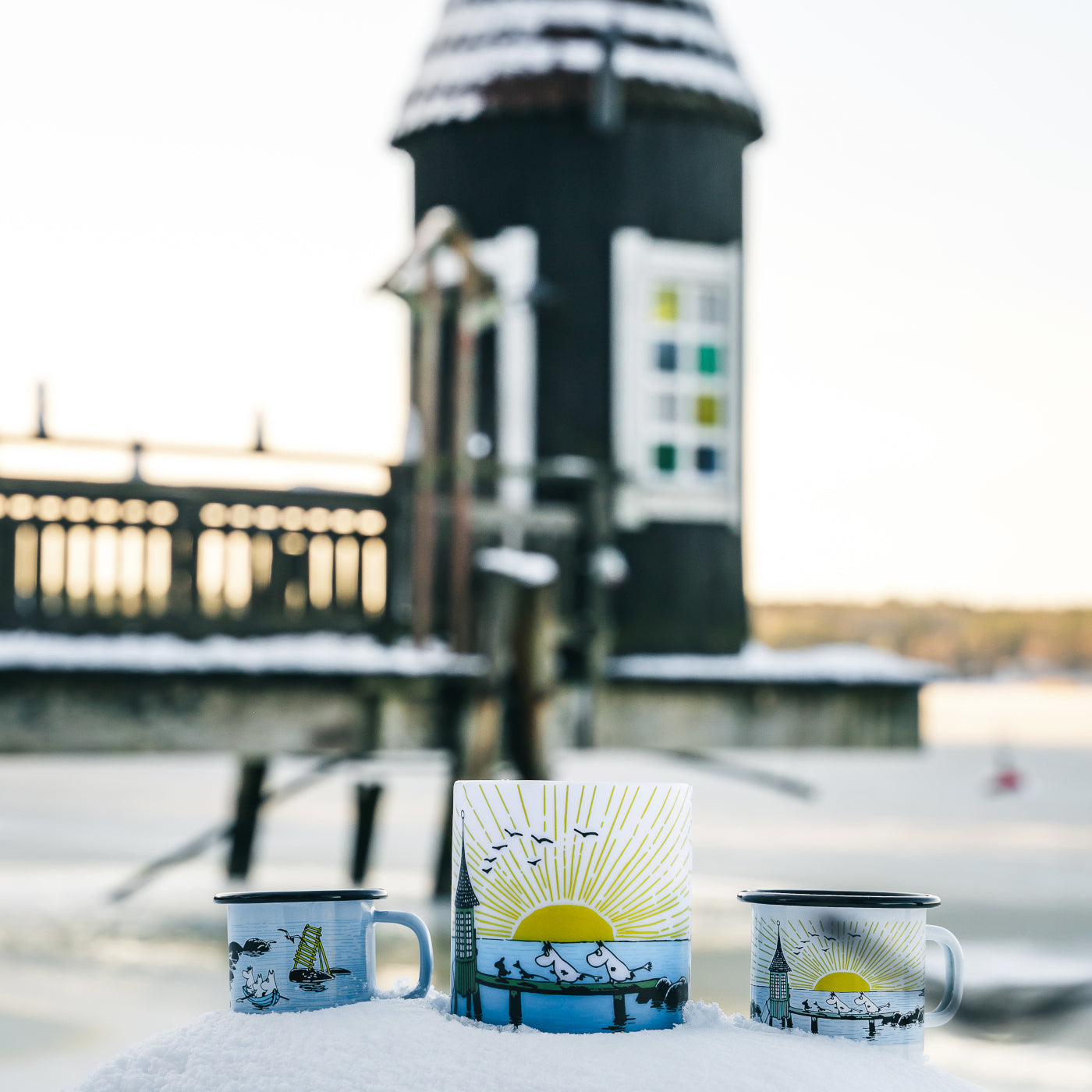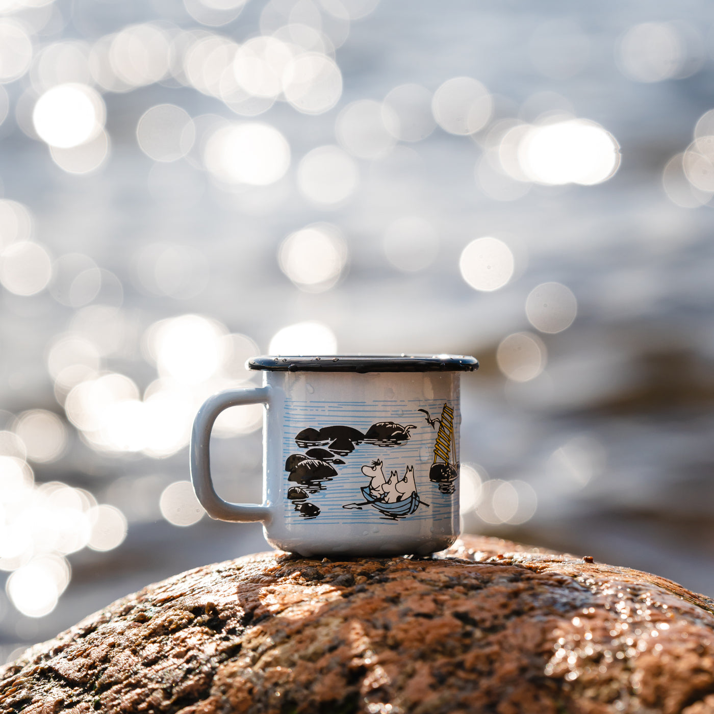 Wer kennt sie nicht: Die Mumin, die nilpferdartigen Trollwesen die im idyllischen Mumintal irgendwo in Finnland leben. Die illustrierten Märchenfiguren von der finnischen Kinderbuchautorin Tove Jansson wurden hier wunderschön auf der Emailletasse vom finnischen Hersteller Muurla verewigt.
