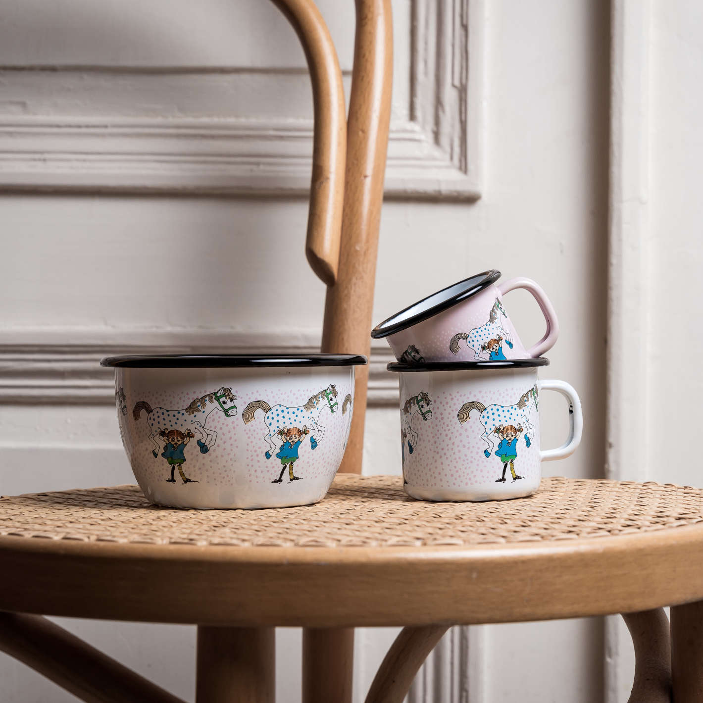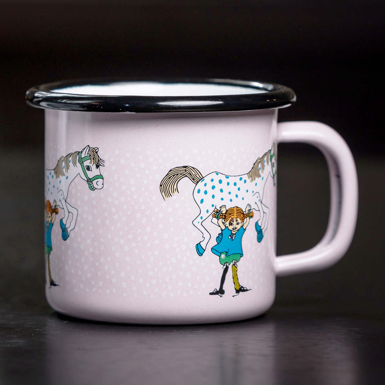 Tasse aus Emaille: Pippi Langstrumpf - Pippi und das Pferd rosa von Muurla