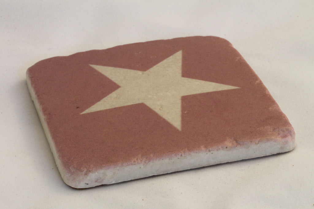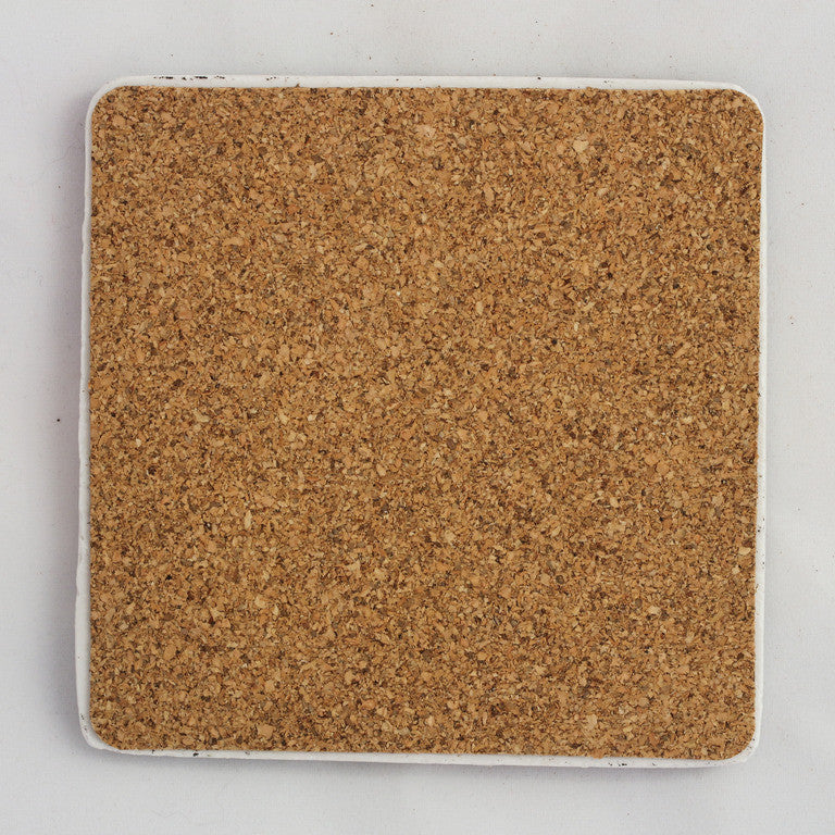 Getränke-Untersetzer aus Stein. Die Unterseite ist aus Kork.