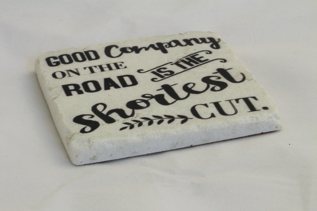 Getränke-Untersetzer aus Stein. Die Unterseite ist aus Kork.