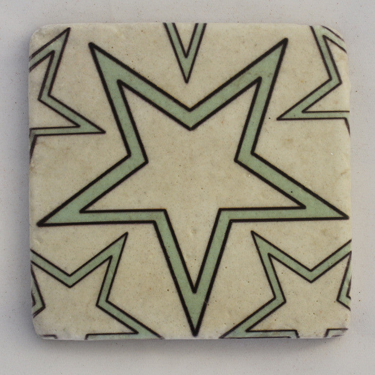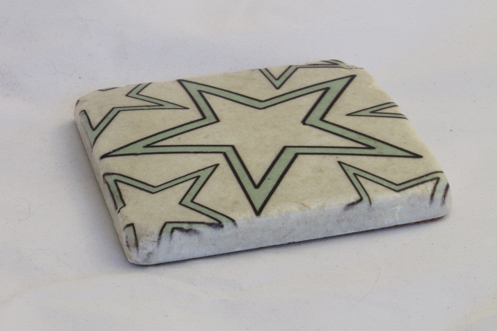 Getränke-Untersetzer aus Stein. Die Unterseite ist aus Kork.